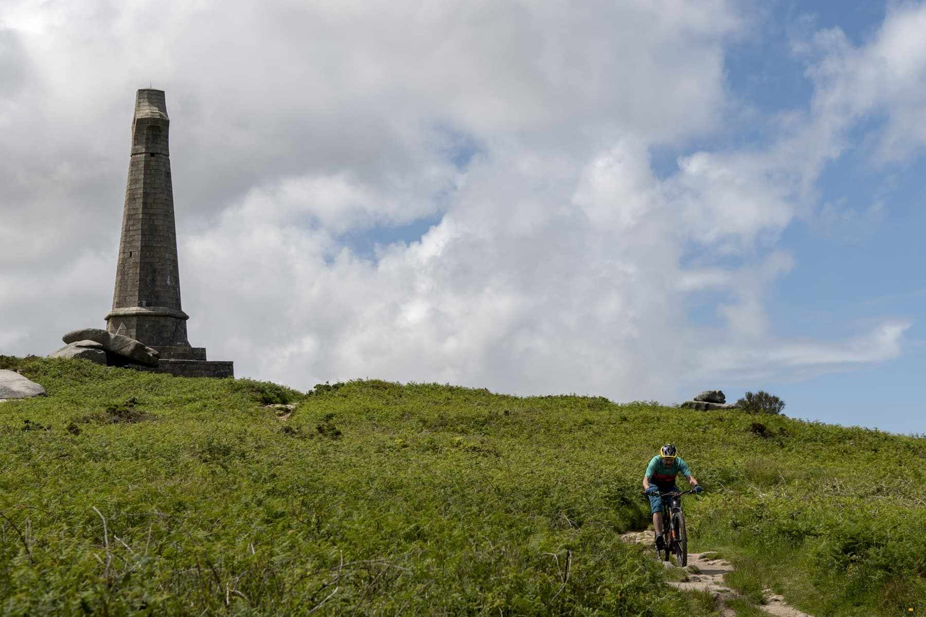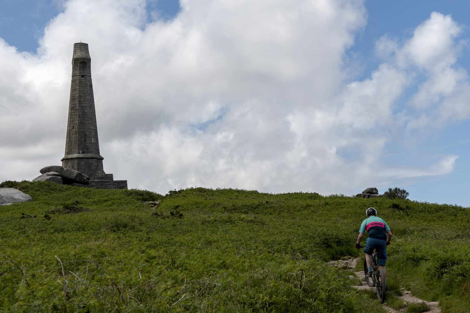 Carn Brea was a Neolithic settlement until around 5,400 years ago, when it was mysteriously abandoned. It was then reinhabited around the Iron Age. Nowadays, it sports a folly/castle/restaurant as well as a rather spiffing monument to the glories of one Francis Basset, who was an English nobleman and politician who died in 1835. It’s an imposing edifice, to be sure, but to my modern sensibilities the whole place would have been much improved if the fans of Frank had left well alone. Also imposing, to be fair, is the nadgery, thrutchy and otherwise step-tacular climb up to the monument (bonus points for no dabs!), where you can park your bike next to the Sacrificing Rock for a quick squizz at the map, and another hot cross bun.
