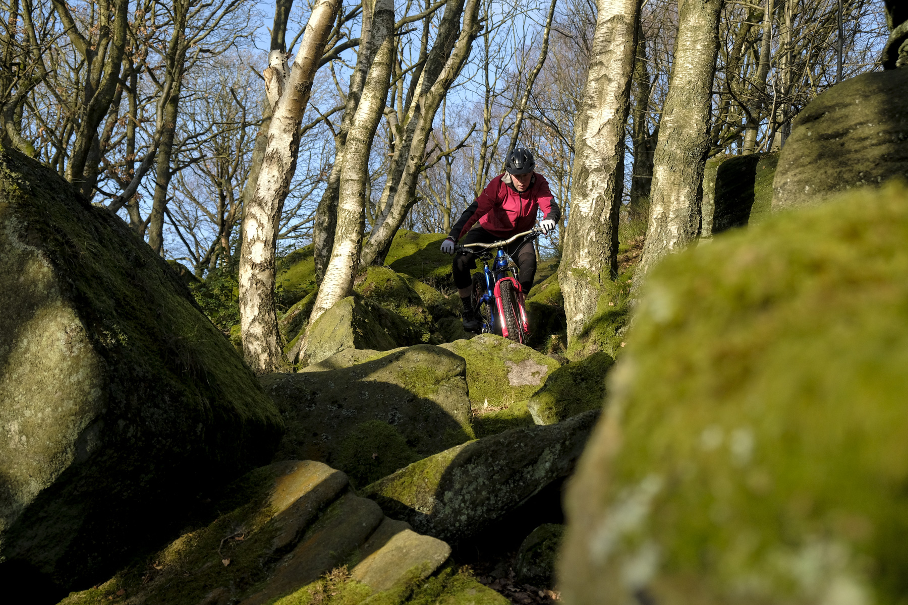 As a rider who often films himself and also edits it, Chris has a very clear idea of the overall aesthetic. He knows the angles and the moves already. He can see the colours of the lichen-covered rocks and the bare trees against today’s watery blue, winter skies. He’s already ridden it in his mind and he knows how it’s going to look, whether that’s for a magazine photo, or for a whole video sequence. Sometimes the obvious shot is furthest from his mind as he looks for original lines.