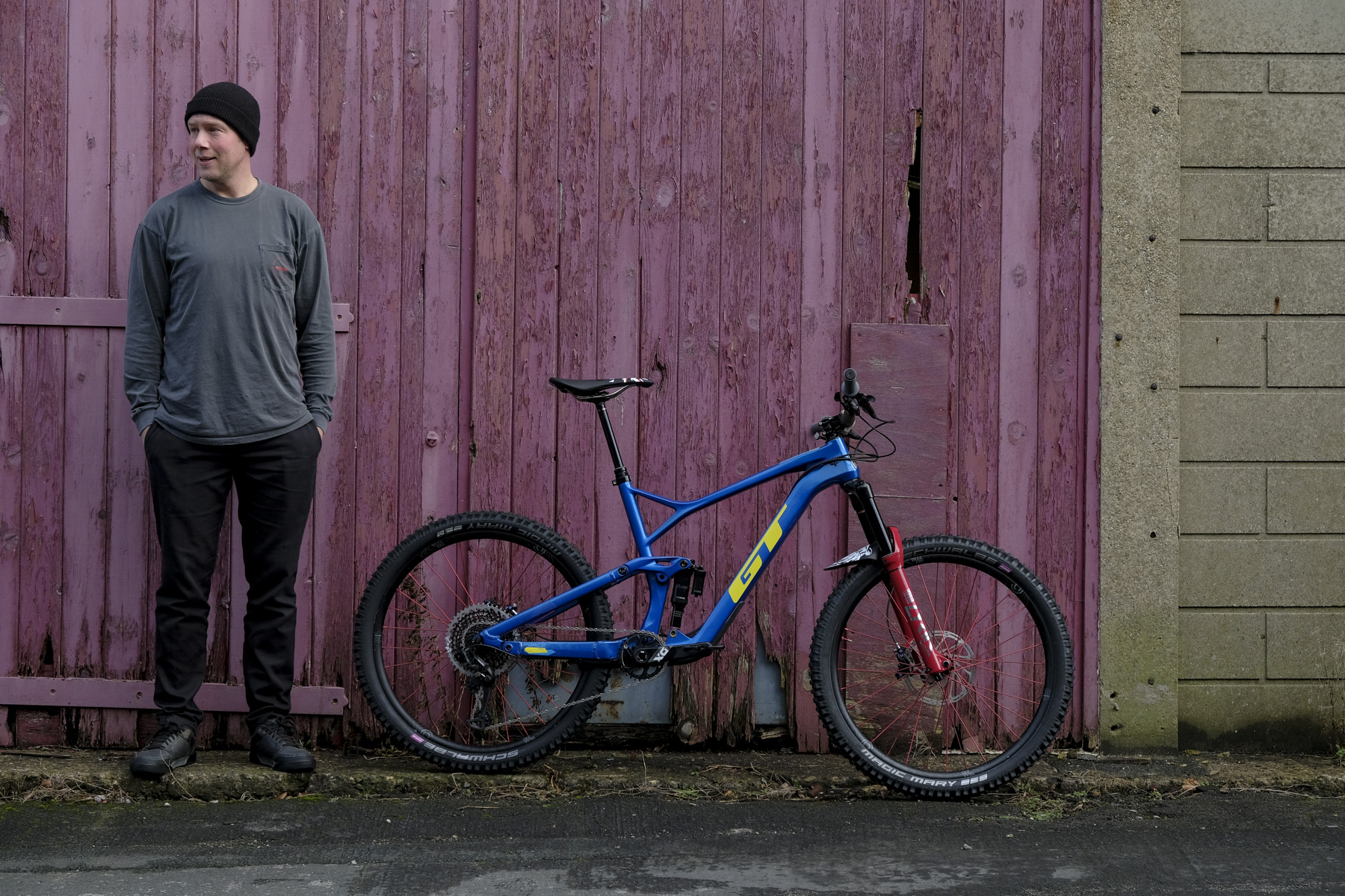 Chris Akrigg is riding a bright blue GT. For a dozen years, we’ve become accustomed to seeing Chris appearing in his self-made videos to alternately finesse and bully his way through trail features and up and over obstacles on assorted Mongoose bikes. That era has come to an end as one sponsorship finishes and another begins. Today is Chris’s first day of riding on a GT.
