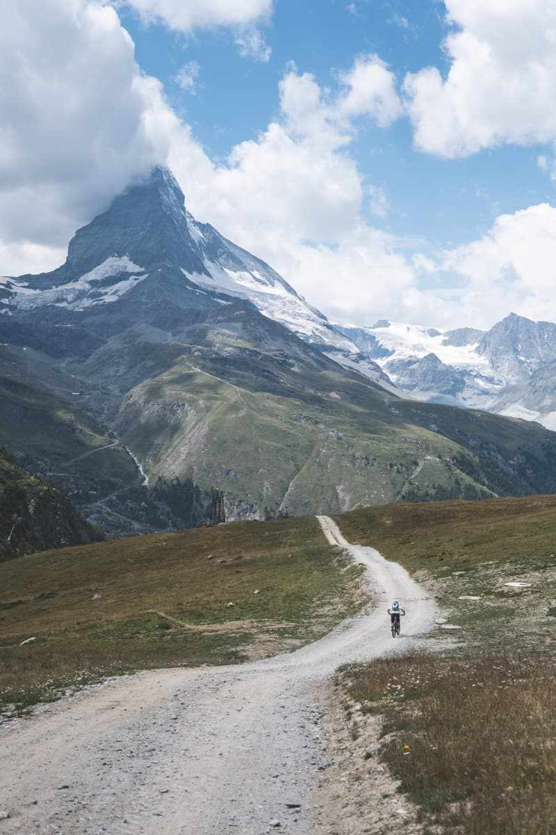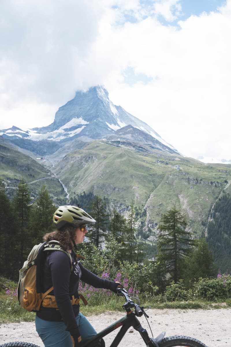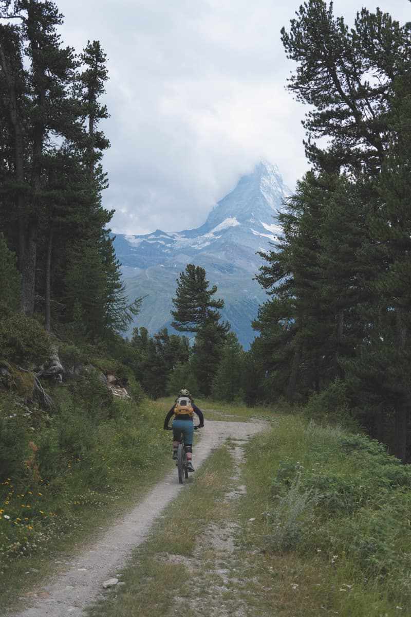 This thing was just utter horse poop. It was at this point that I realised the extent to which Emma took advantage of my aversion to properly reading the trail map. This thing was a slow burner. Despite being clicked into my lowest gear and my feet spinning to the beat of a dreary funeral march, I was dying over and over and aiming silent death threats in Emma’s direction. In an attempt to have a rest without letting Emma know that my left lung had fallen out 20m into the climb, I proposed a pee/resuscitation break. Over the past 26 years, I’ve developed a bit a reputation for peeing in somewhat ‘interesting/inappropriate’ spots. I can safely say that this pee was solidly within the Top Three. I selected myself some convenient boulders and wedged my butt into place with the Matterhorn staring fondly down at me.