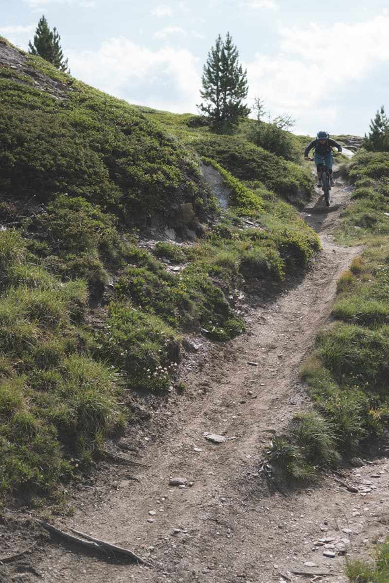 After a decent rest, I choked down a gel and reached the top fuelled by the wild hope that there would be beer. Lo and behold, there bloody was! Fortunately, Emma had used her God Level planning skills to ensure that we had an epic descent back into town. After a few jars at the hilltop bar, we floated on down to the start of Moos Trail. With a little careful timing, the pedals don’t need to be nudged. Just pump, jump and hang on till the bottom. This is an entry level trail but can definitely push even the most experienced rider. It’s the shortest trail in the area, but it definitely doesn’t lack fun. As one of Zermatt’s designated ‘flow’ trails, it’s packed with well-groomed, smooth berms that flawlessly guide you through tabletops and rollers. Thank you Jesus, I’m back in my comfort zone.