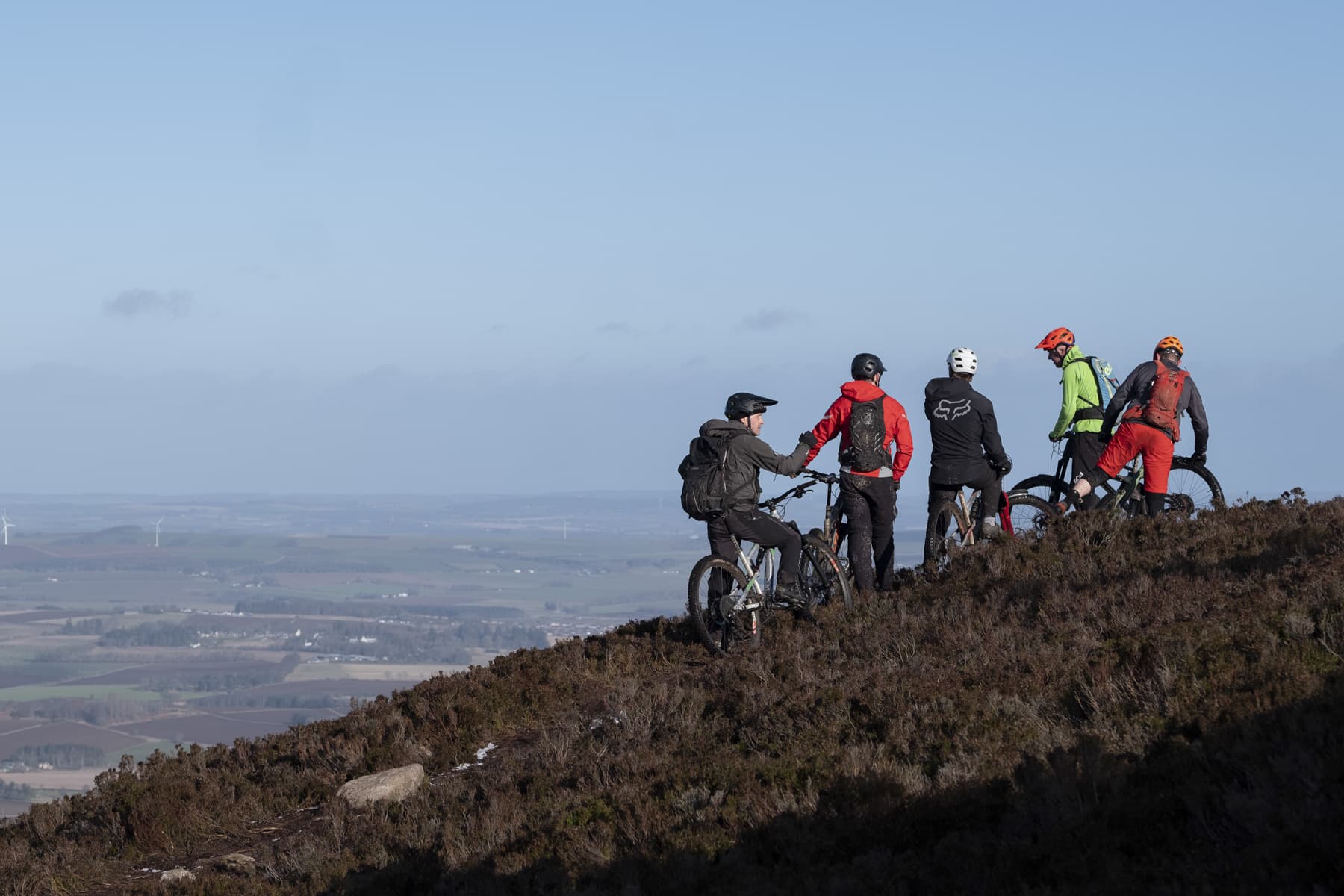 A quick drive saw us popping wheels on at the Bennachie Centre car park. Euain and Shaun were already getting prepped. We’d done most of this route in parts together, but today we were also riding with Neil, a keen local rider, Clark, who runs the excellent Bennachie Bike Bothy and finally Alex. I’ve known Alex for quite a few years. He’s a great rider and he also has an uncanny ability to create magic with his camera, whether it’s on a mountain top in the Cairngorms, or catching the local summer evening road races.