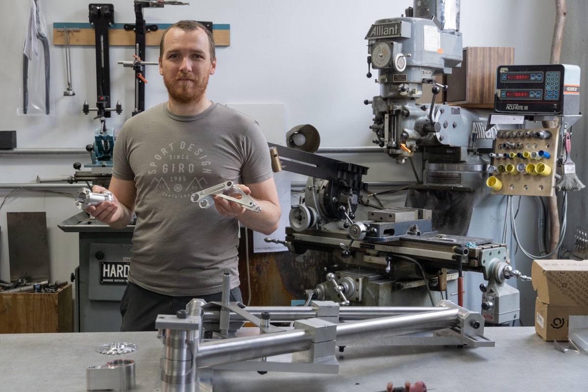 ‘The links and idler pulley were machined by Dave Mather of Mather Machining. He runs a local machine shop and I am so stoked that he took the time to make my parts! They turned out incredibly good! It is hard to describe how good it felt pressing the bearings into links with such perfect tolerances. I’ve never felt anything as nice in nearly 20 years working as a bike mechanic.‘