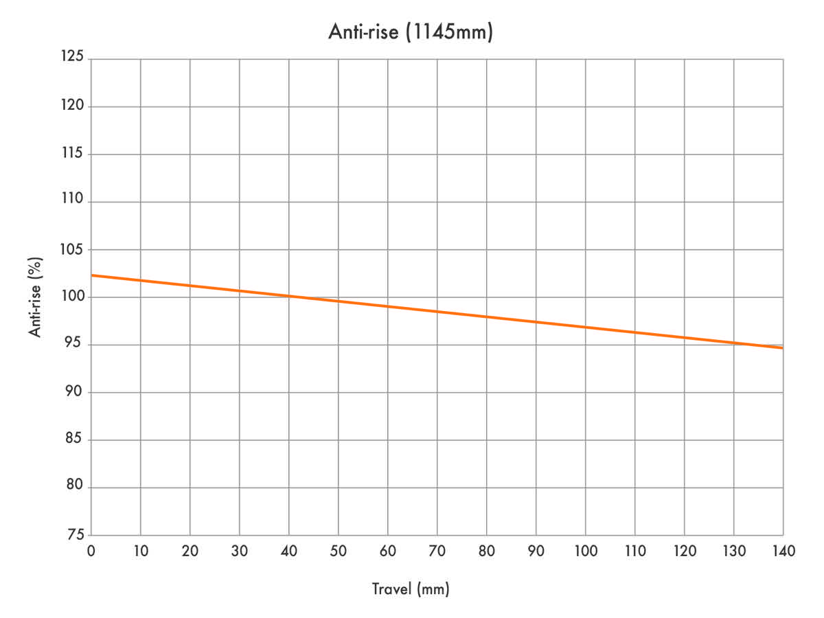 It also has 100% anti-rise at 30% sag (although he says 30% is his preferred sag, you don’t have to stick to that) which means braking forces will not compress or extend the suspension.