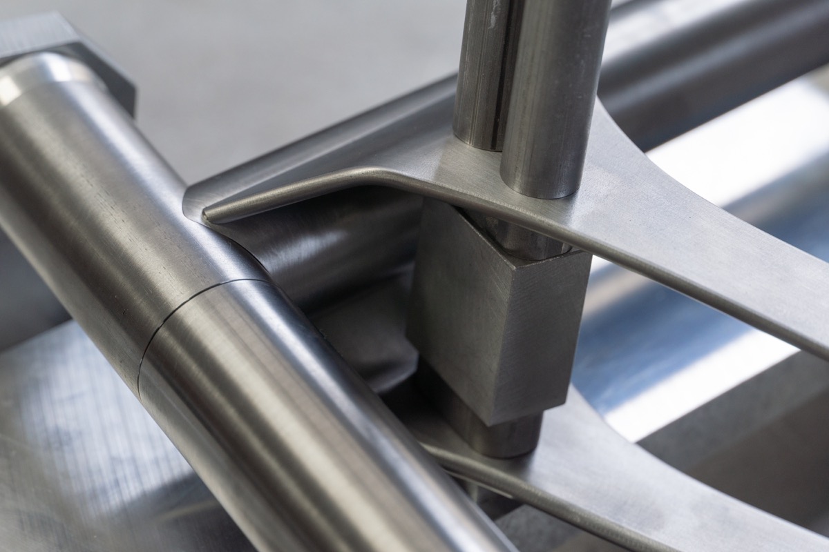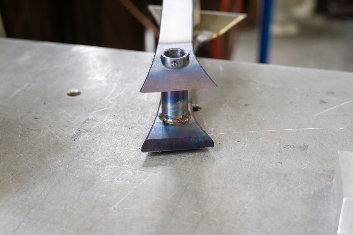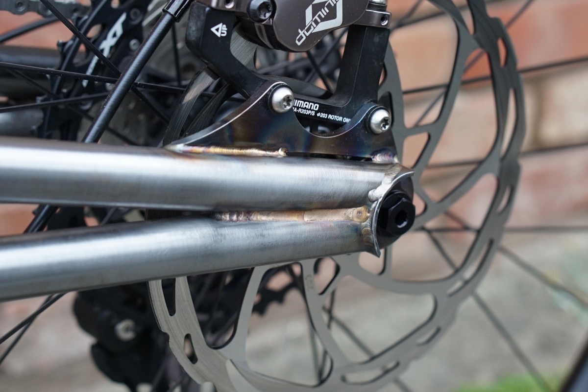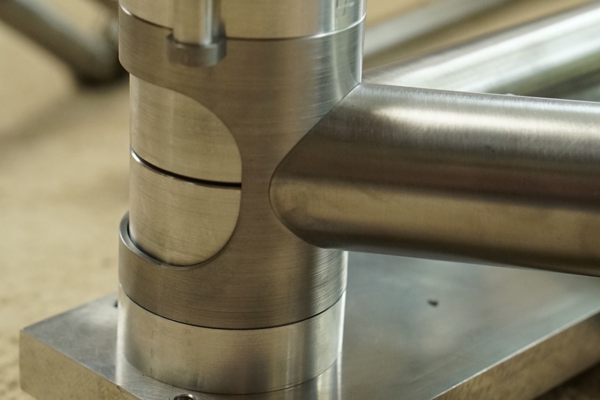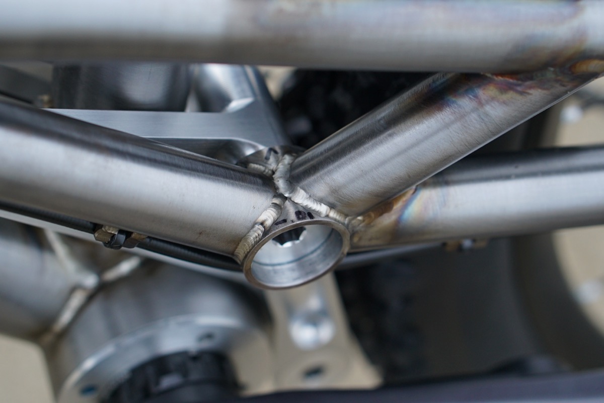 As you can see from the construction images, the quality of the mitres is excellent. Incredibly neat and so accurately fitting together before any tacks or welds are added. Just look at how the shock mount sits against the frame. Those mitres are filed finer than a manicure at Harvey Nichols.