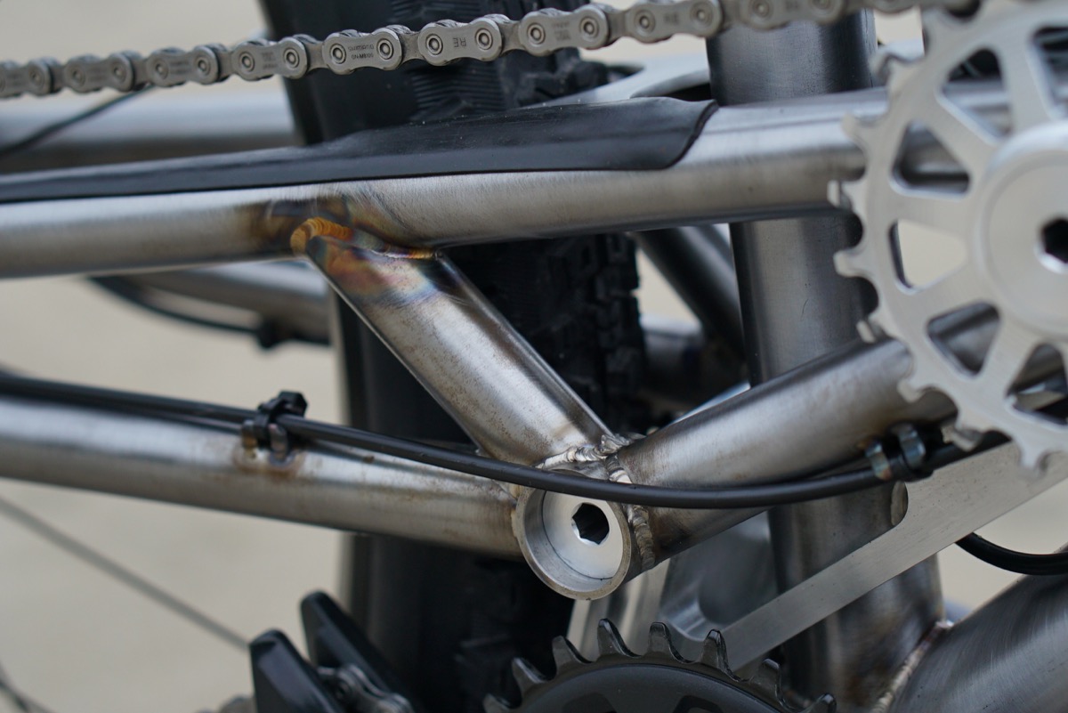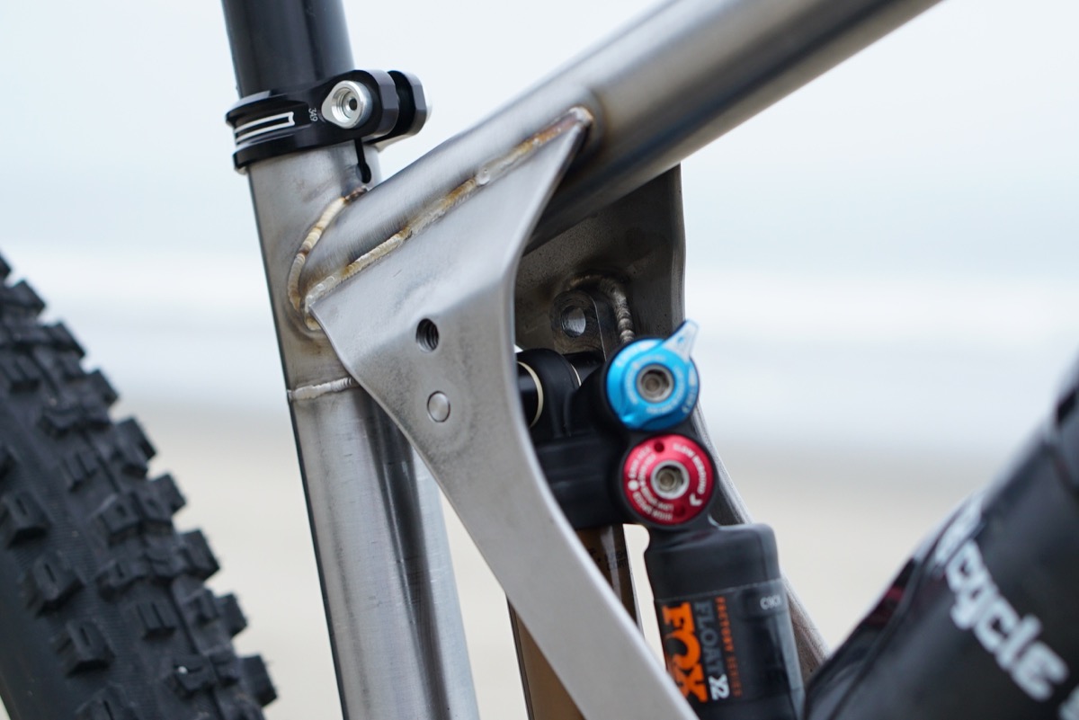 It is still very much early days. The next step is to take what I have learned from this bike and apply it all towards the next prototype. The next one will be aluminum and much closer to what a production bike will be. I do really like the ride and look of steel, but it is difficult to get the weight and stiffness in a competitive range, especially because this bike is a little more complex. Most steel full suspensions are simple single pivots which makes them easier to build lighter.