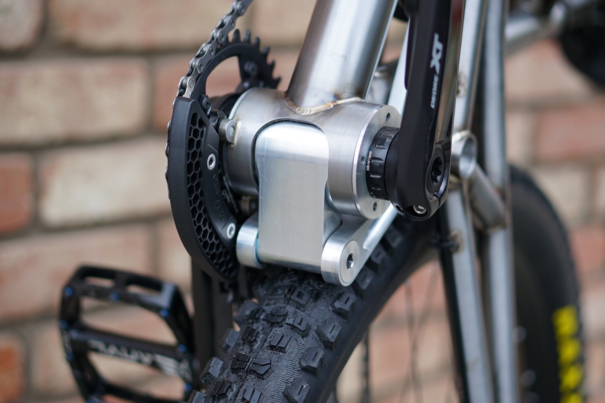 @Duncan Brooklyn Machine Works and the SR6 were ahead of their time in many ways. I did see that exact bike when coming up with ideas for mine. It does have some similarities like the large idler pulley and steel construction. Kinematics, layout, and geometry are the real big differences with my bike. My idler pulley is also not concentric to the main pivot which is how it achieves the unique anti-squat.