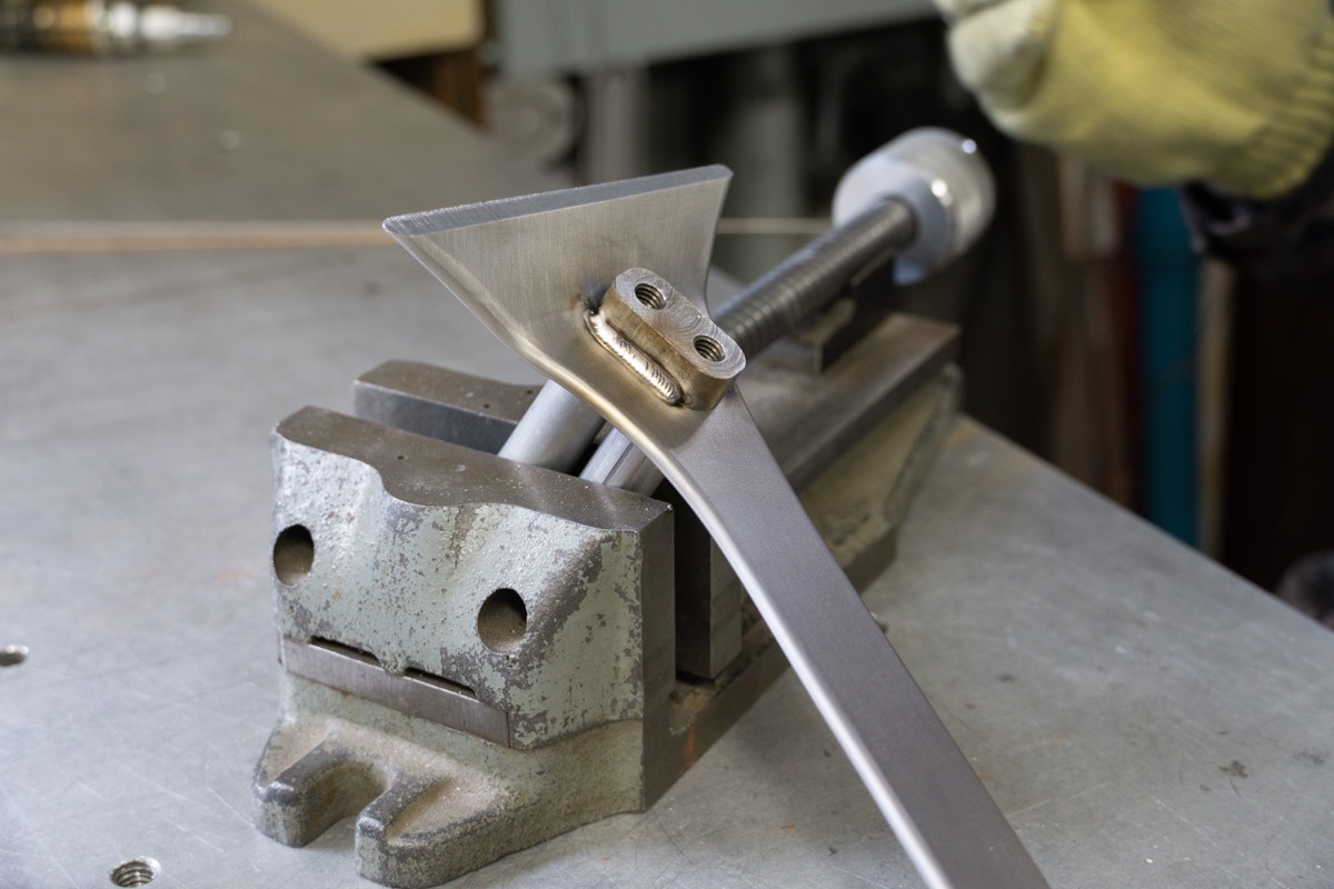 As yet there’s no head badge, just raw naked steel. It won’t stay that way for ever, but right now the branding is still a secret, and Evan’s baby is nameless: ‘The bike itself doesn’t have a name yet, but I do have a potential brand name that I really like! I just can’t share it yet for trademark reasons.’