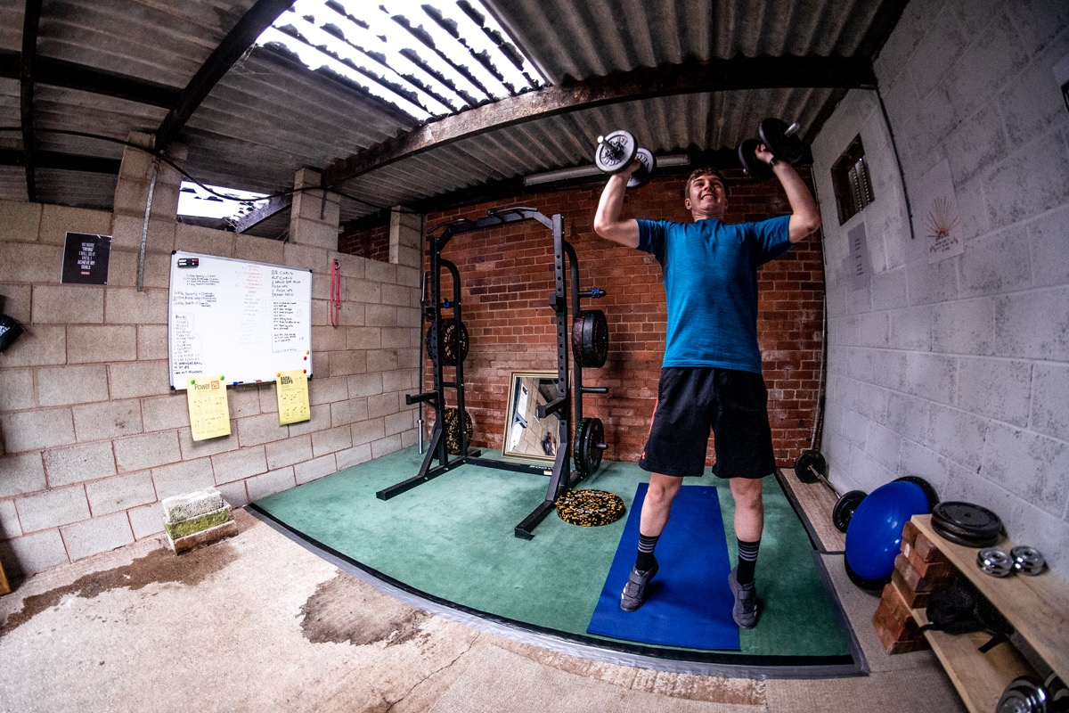 Once the race season gets going – whatever form it takes – Matt thinks he will be well prepared. He spends plenty of time in this makeshift gym. Each session has a goal, with strength, dynamic and maintenance sessions.