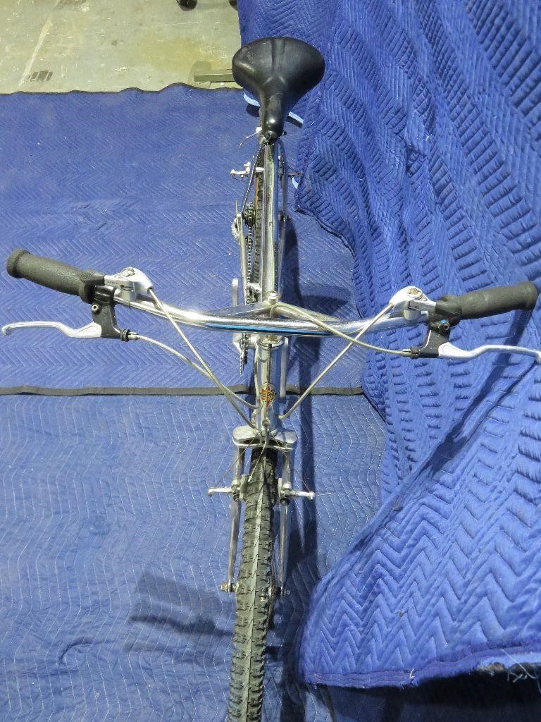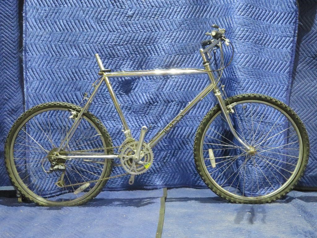 He says: Ross had an incredible burst in the MTB scene in the early and mid ’80s sponsoring a race team (with Joe Murray) a race series and building quality MTBs affordably. Then, lacking a quality dealer network (they were big box store bikes), they were quickly out developed and out marketed by Independent Bicycle Retailers who could service and upgrade the increasingly complex machines being pushed to the limits of their durability. They do well because of chrome, but it has a bit of a hodge-podge of parts, so I hope to sell it.