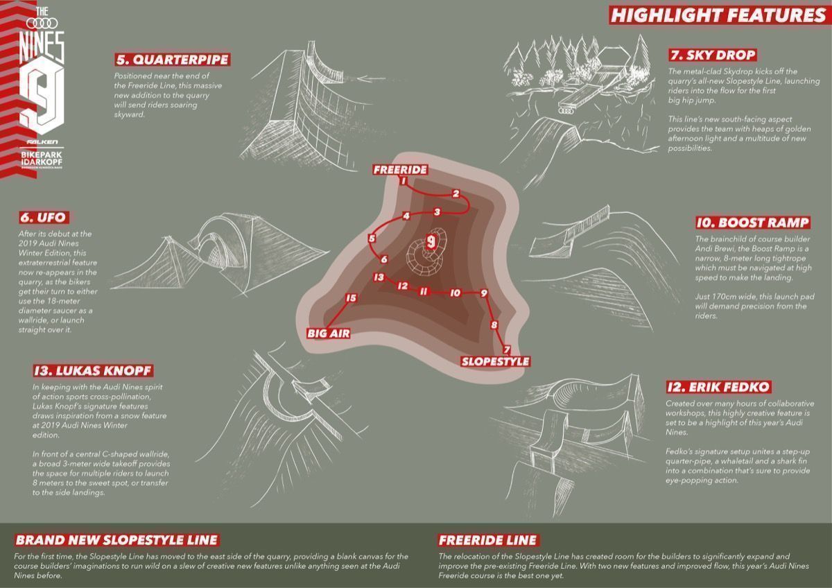 The Audi Nines – a freeride event for freeskiers, snowboarders and mountain bikers – offers riders the chance to go big. This year, it’s one of very few events still taking place, and we look forward to seeing the full video production that comes out of it (here’s last year’s if you need a cinematic injection to your day). For now, we get a sneak peek at what’s to come with the course preview.