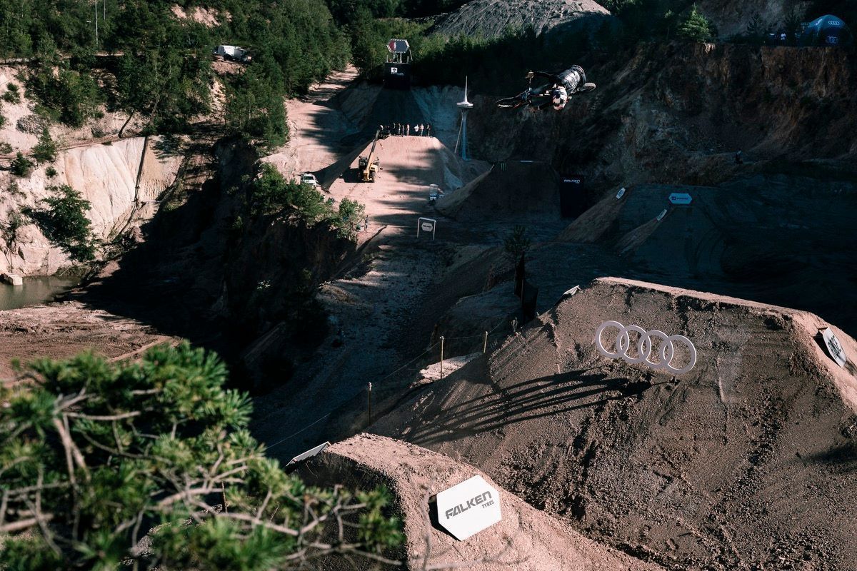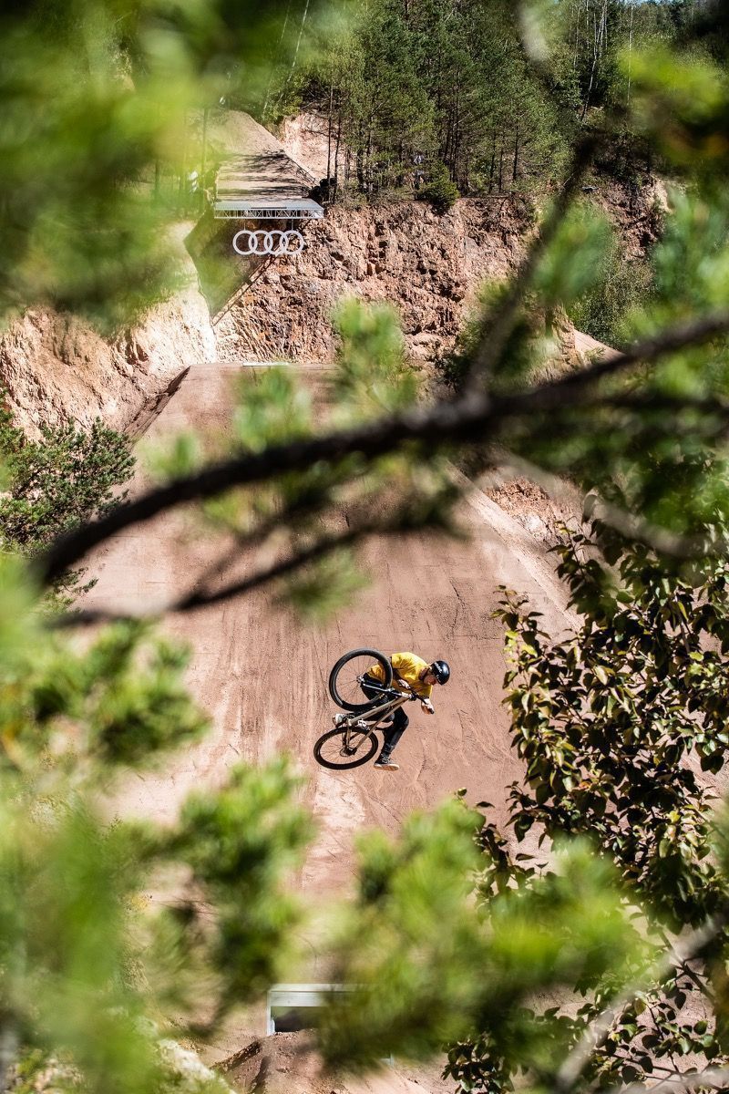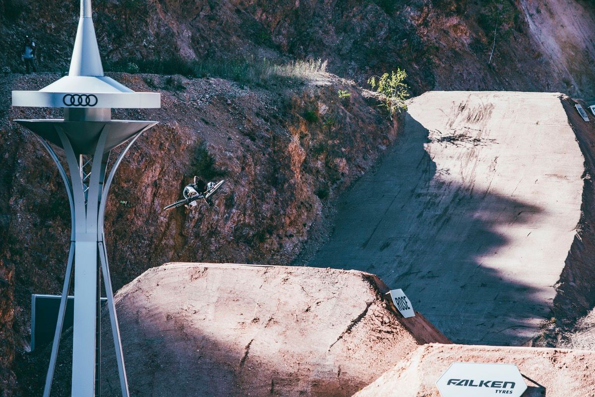The Audi Nines event takes place in a repurposed stone quarry, and this year there are no spectators allowed. The absence of public has meant the course builders have been able to expand into the east side of the quarry, where they’ve built a slopestyle line.