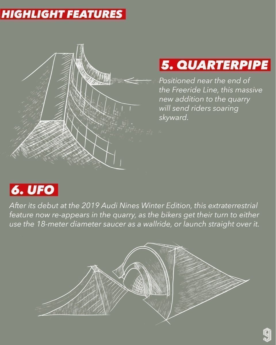 Elsewhere in the quarry there is an expanded Freeride Line and Big Air venue, including a massive quarter-pipe.