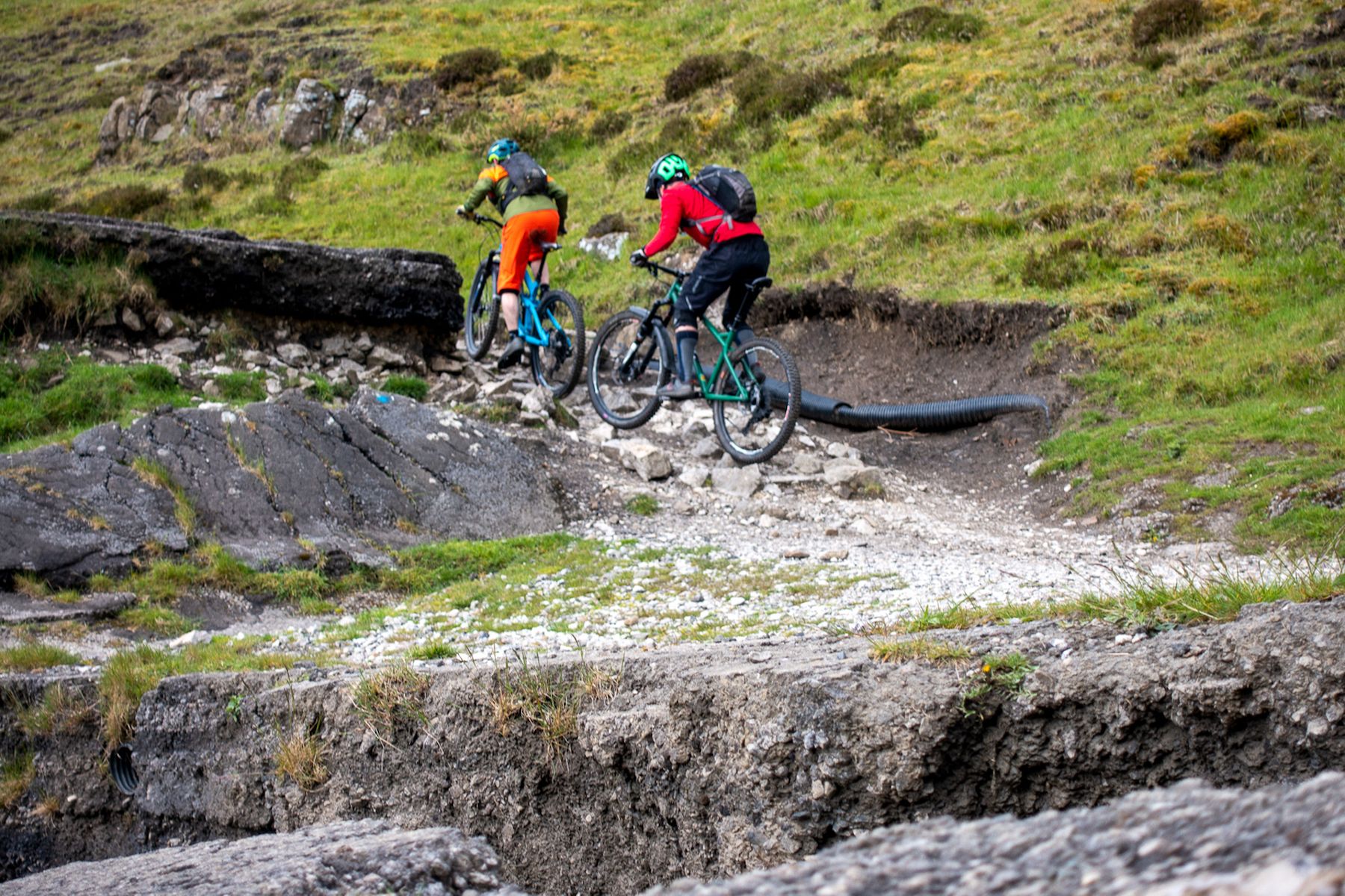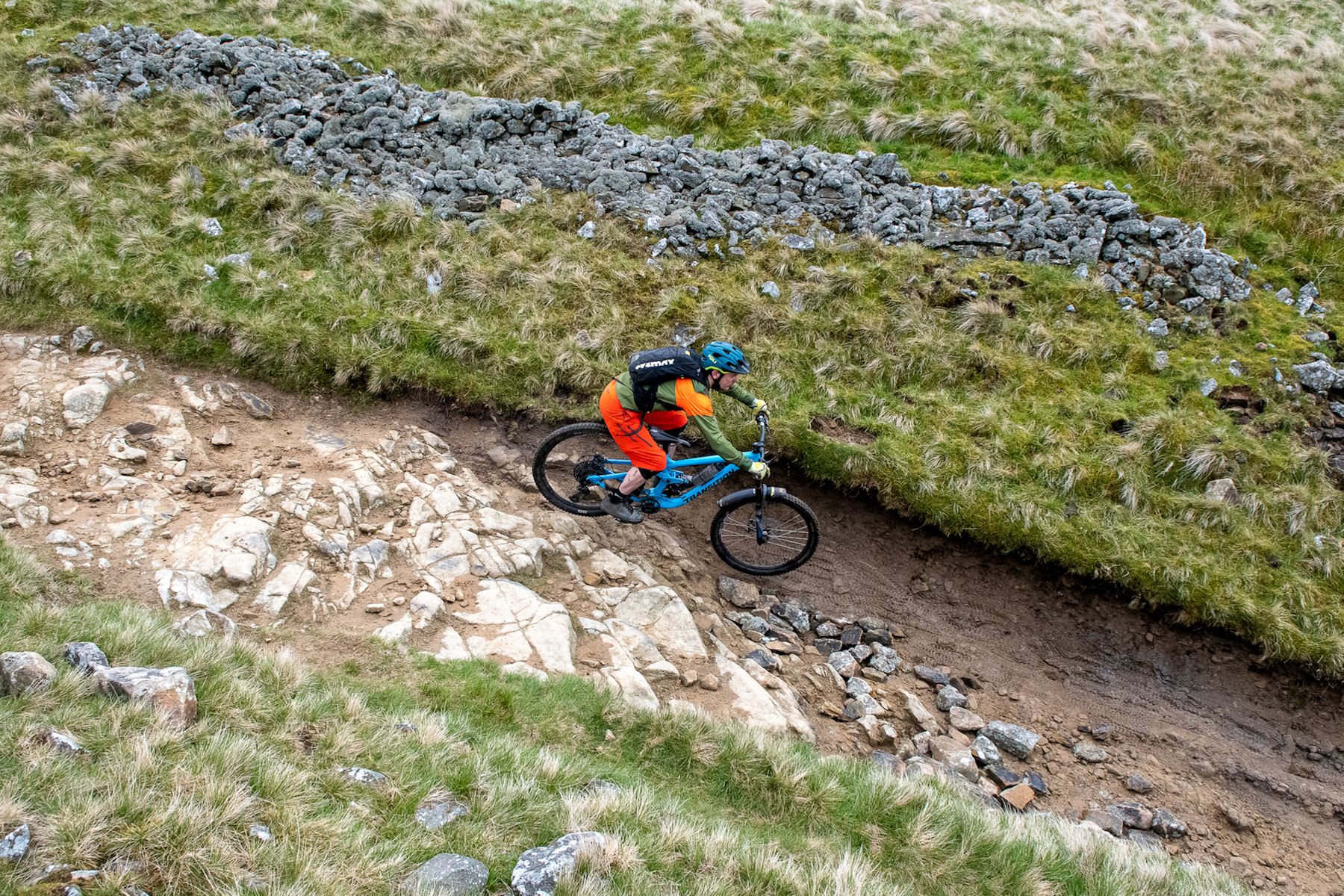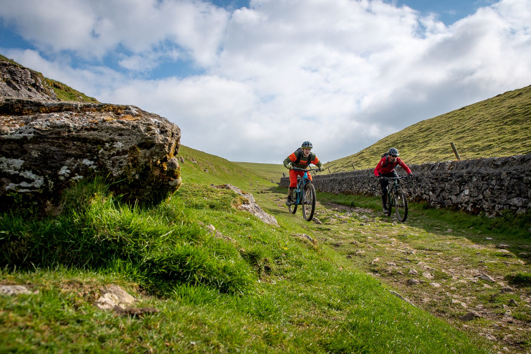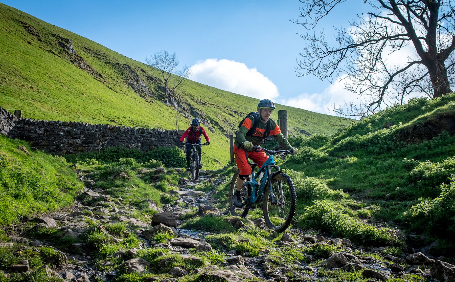 Take a beautiful, open, grassy, gently sloping and (when it’s dry), hugely fast valley. Use this to distil a supremely confident feeling of invincibility in mountain bikers, before suddenly dropping the trail through a very steep gorge. Fill the gorge with limestone boulders, and for extra spice, season liberally with walkers coming up, and then, for shits and giggles, shove a stream down the whole thing.
