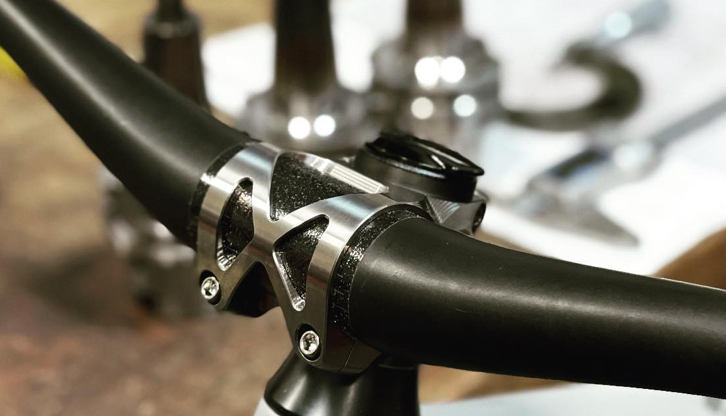 This one is machined down from a 1350g lump down to the 110g piece of jewellery you see above, it’s 32mm long for a 35mm clamp, and they do have plans for a four-bolt model for those using high rise bars that may not fit through the single sided bolt design, price TBC, but is suspect it will be in the ‘if you have to ask’ category.