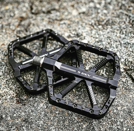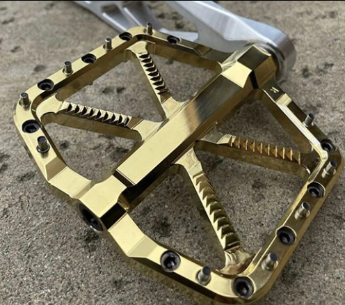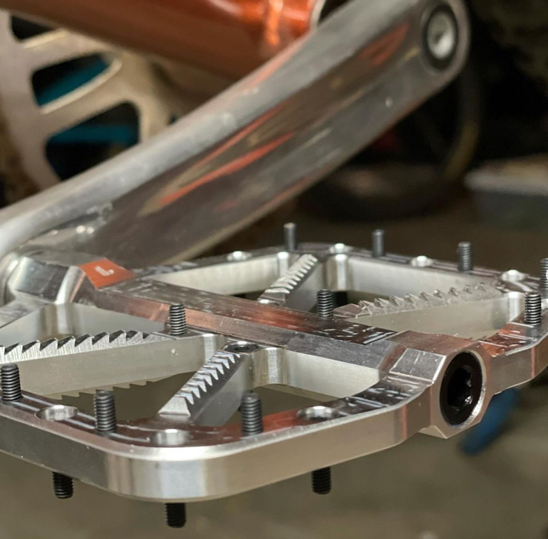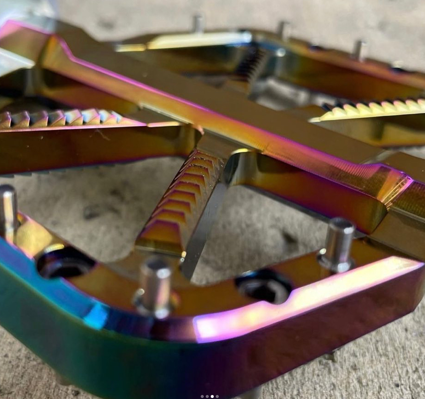 Now on to less exotic materials, 6061-T6 aluminium, but no less exotic looking pedals. They’re 106mm x 110mm, and just over 11mm tall, weight is TBC but I’ll add a comment when I find out. Cost is $199, though shipping is pretty eye-watering to the UK ($54), plus import duties and VAT.