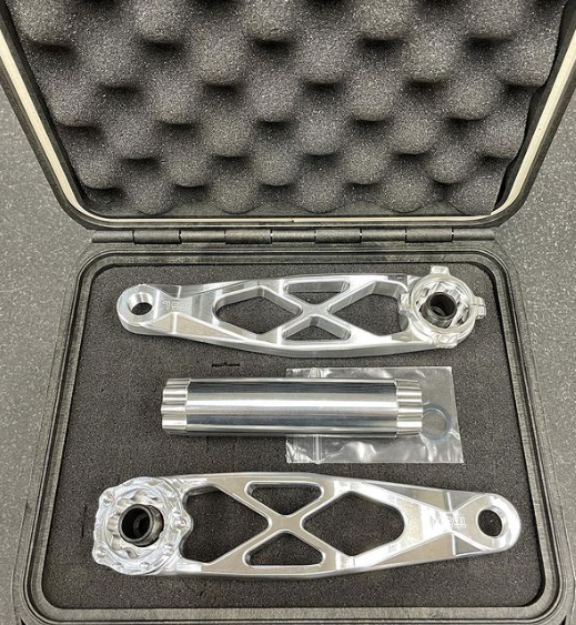 Boring stuff first, they’re made from 7075 billet aluminium, they come with a DUB or 30mm axle, in 160, 165, 170 and 175mm lengths (although there is talk of longer and shorter options) have a Q factor of 167mm and run the SRAM direct mount interface. They weigh 500 grams and cost $499 (plus the shipping and taxes I mentioned above). Those last two numbers mean this is very much a heart rather than head purchase, but just look at them. Another plus point is If ever you’re near the Forth Road Bridge and they need a replacement 160-175mm strut, you’ll be able to help! You’ll also become very familiar with them if you ride them through a British winter, unless you want to add a pound of mud to that 500g weight. But then you’ll clean them and get to look at them again. Double win.