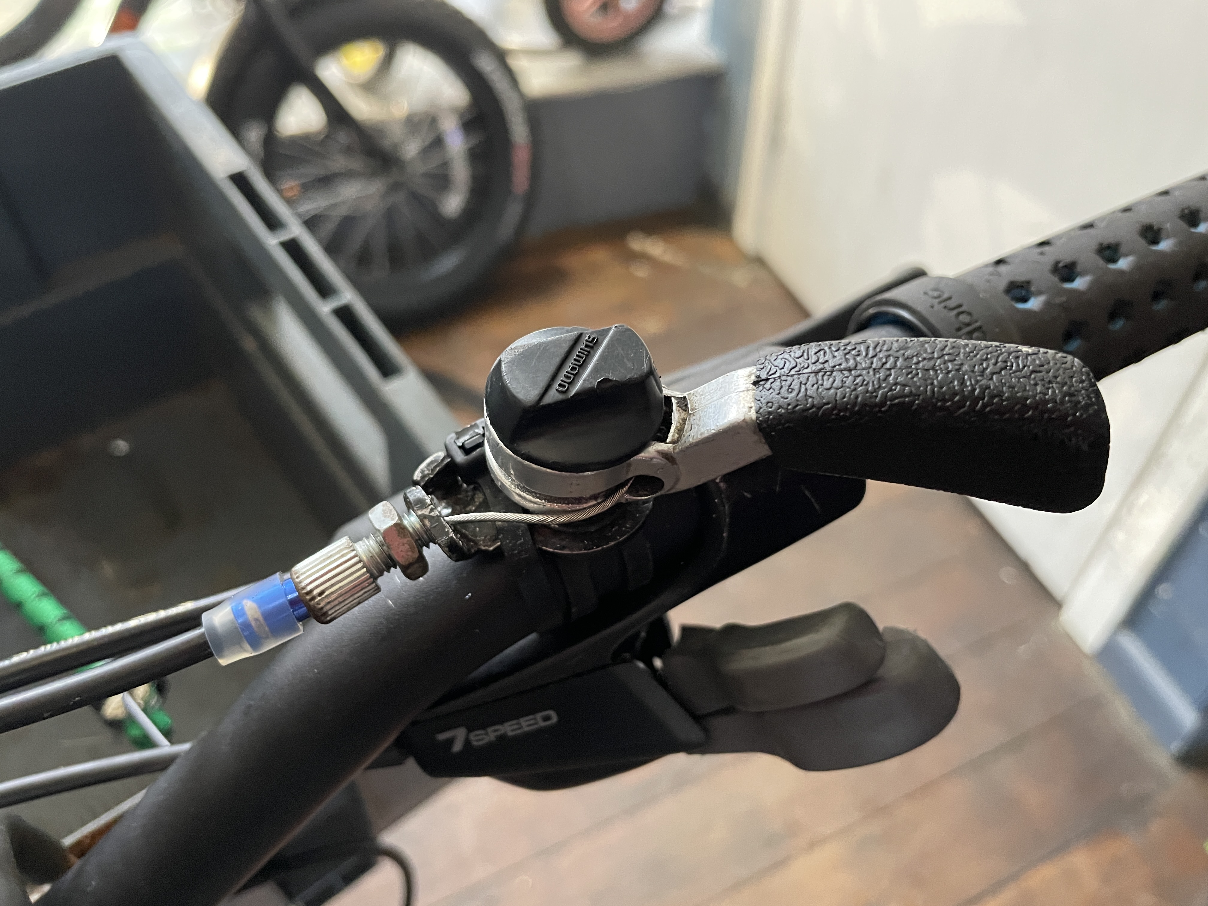 The line that the cable runs from the lever into the cable outer is pretty shambolic but that’s remedied (maybe only temporarily) by a piece of nylon cable sleeve.