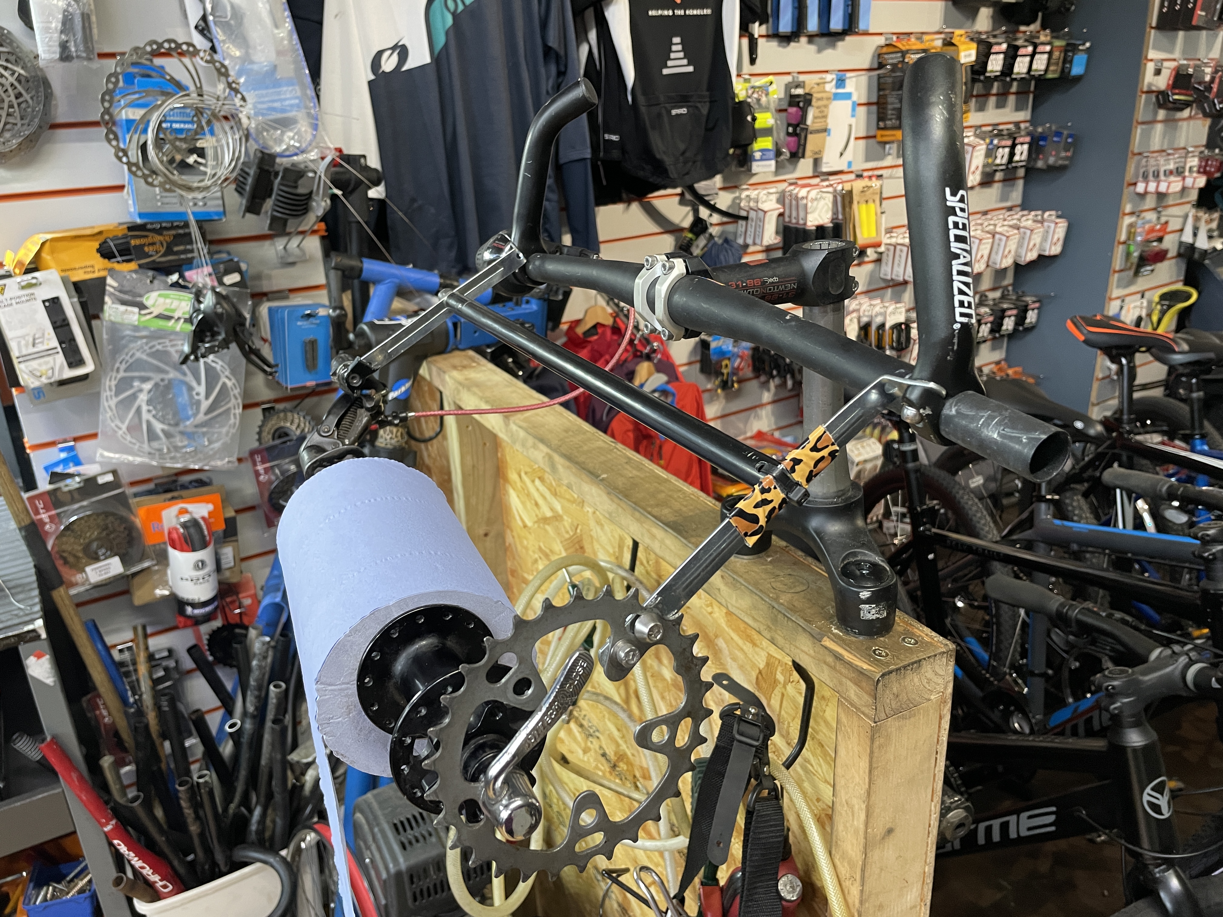It was with this thinking that I came up with my first idea for a remote dropper on this bike. Has anyone ever made a dropper that’s activated by a bell?