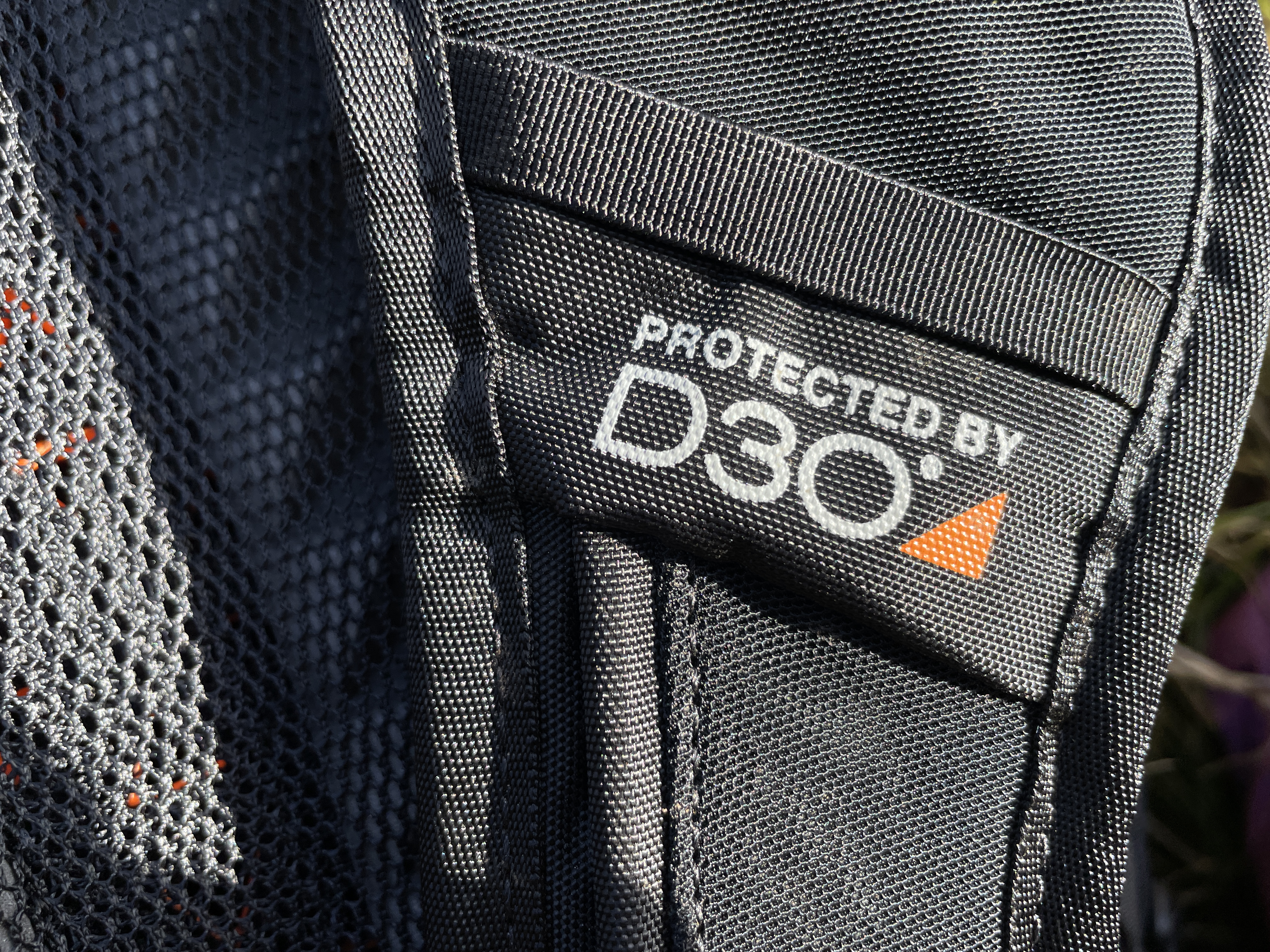 I have no complaints about the comfort of this pack – it’s lightweight and comfortable to ride with, and there’s ample room to carry all the gear you might need on a big ride or in an enduro race in the mountains. The Airscape ventilation system looks like it should provide decent airflow to your back, but since much of my testing has been done with a waterproof jacket on this isn’t really a feature I have been able to test. The protective liner is flexible, but it’s a mystery to me how they got it into its zippered pouch – it is supposed to be removable. Perhaps it needs a really warm day to make the D30 extra soft and bendy to get it out, but I wasn’t about to ruin a backpack by forcing the issue. It doesn’t come with a bladder, but if you want to use one it slots in next to the D30 liner and routes inside a zipper over the right shoulder – there’s no left handed/mouthed option here. This zipper system is super easy to use, however, with no tricky routing of tubes through loops and holes as with most other packs.