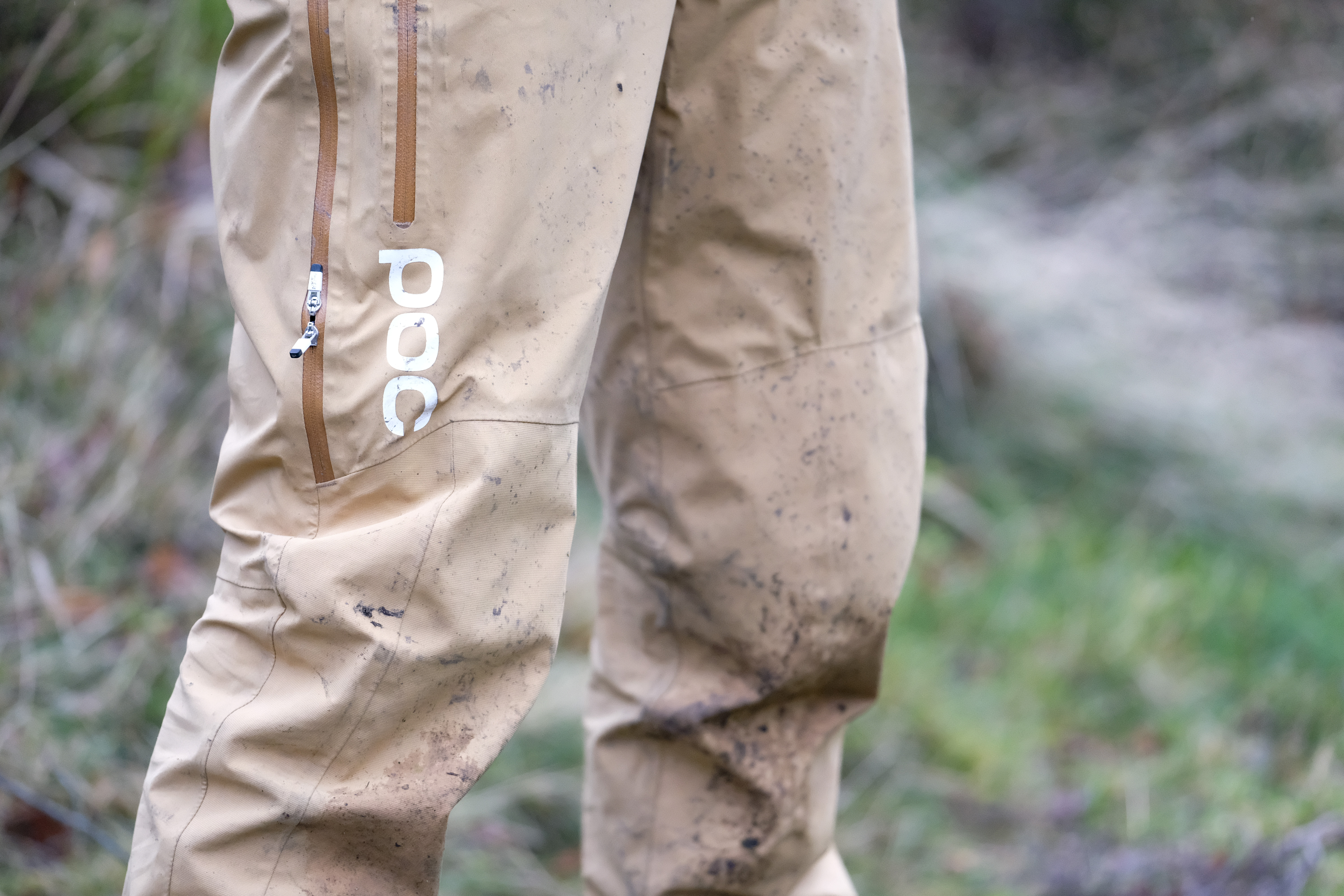 To date, the dungarees have held up well, though at the price you’d hope so. I’d love to see some extra reinforcement or super tough material around the seat area, as this is where all my other waterproof bottoms tend to fail first, by rubbing away along the seams. I’d also like a different colour – the desert sand colour is not a great match for trail mud and they’re rather stained.