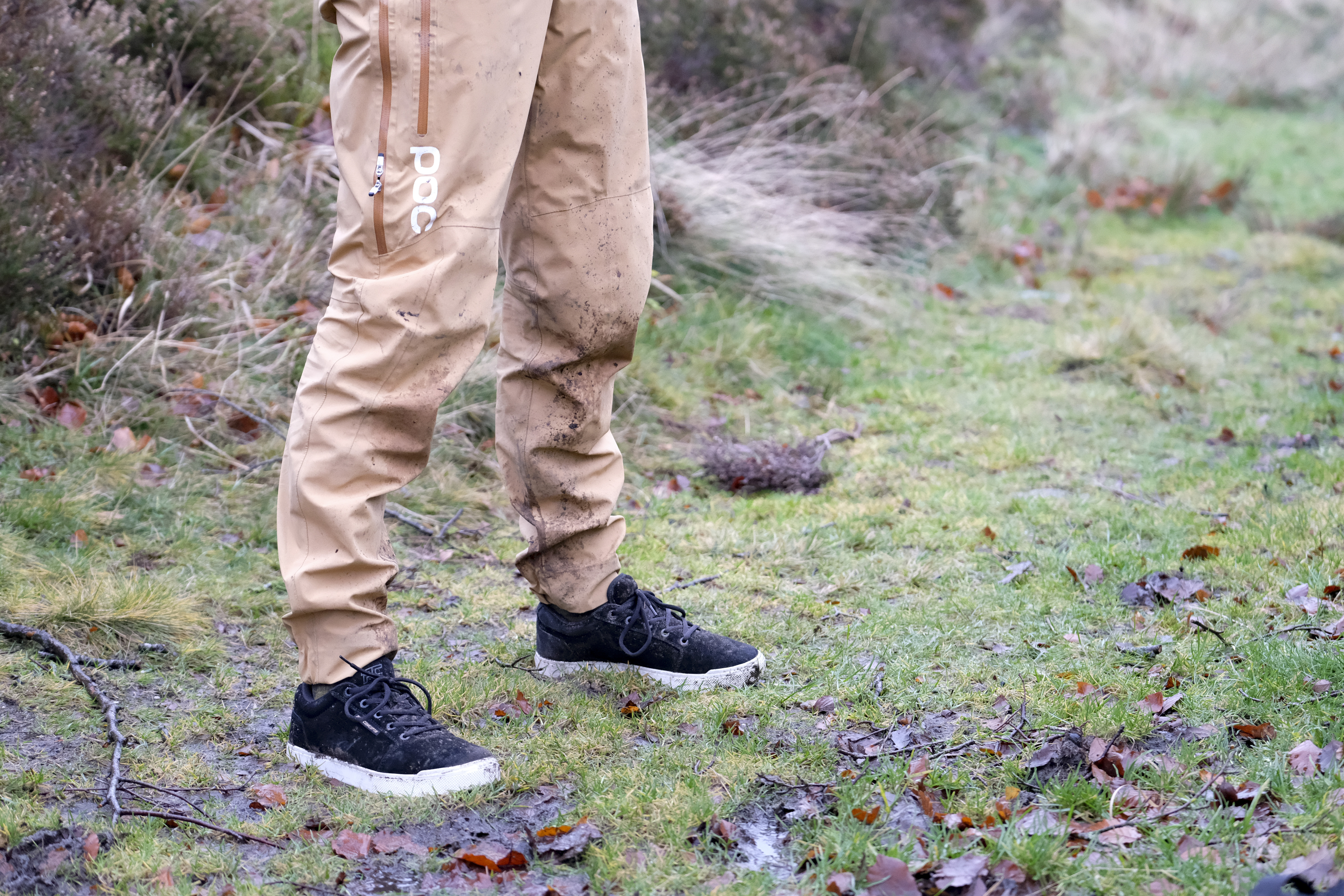 They are waterproof, but as with all that I’ve ever encountered these do wet through and especially so at the bum where you’re grinding all the muck and wet of the trail into your saddle and bum fabric. Nonetheless, they are probably as good as I might hope for on that front. I noticed a slight quirk when riding in high-top shoes – the water would run straight off my legs and directly into my shoes – whereas with just a shoe on the stiff cuff tended to guide the water over the tongue of my shoes. Perhaps for use with with boots or high tops, some sort of heel strap or lace hook would be welcome to prevent the shoe filling experience.