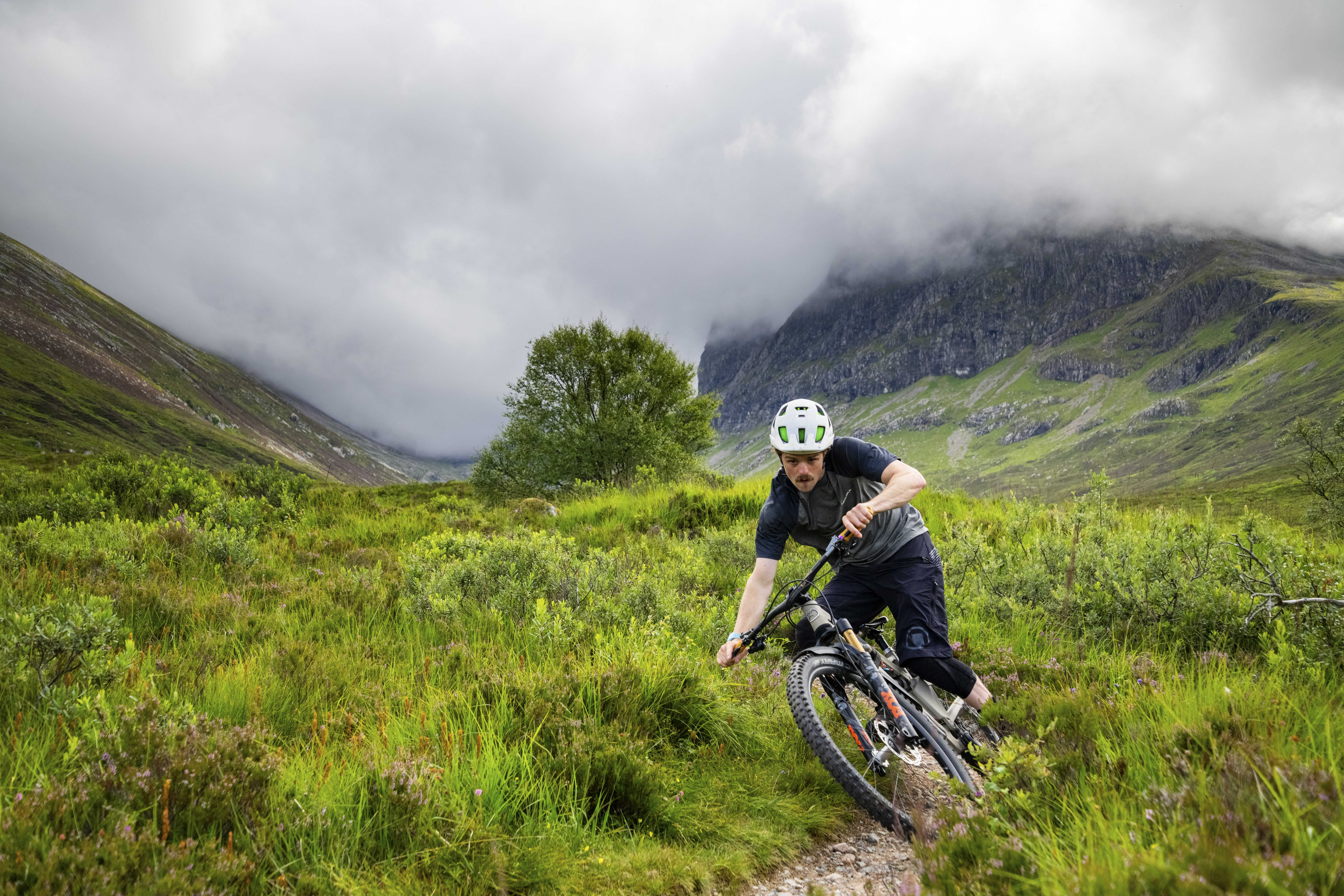 Not the best example of a rider ‘talking’ on a trail, but we found plenty of that in the woods higher on the hill. Joe knows where the sun is going to be on a certain trail, and if the woods don’t work, then we could head up the CIC hut path which gives you cracking views of Ben Nevis. We rode there too, Joe making mincemeat of the massive drainage bars that I walked over. The boy was flying.