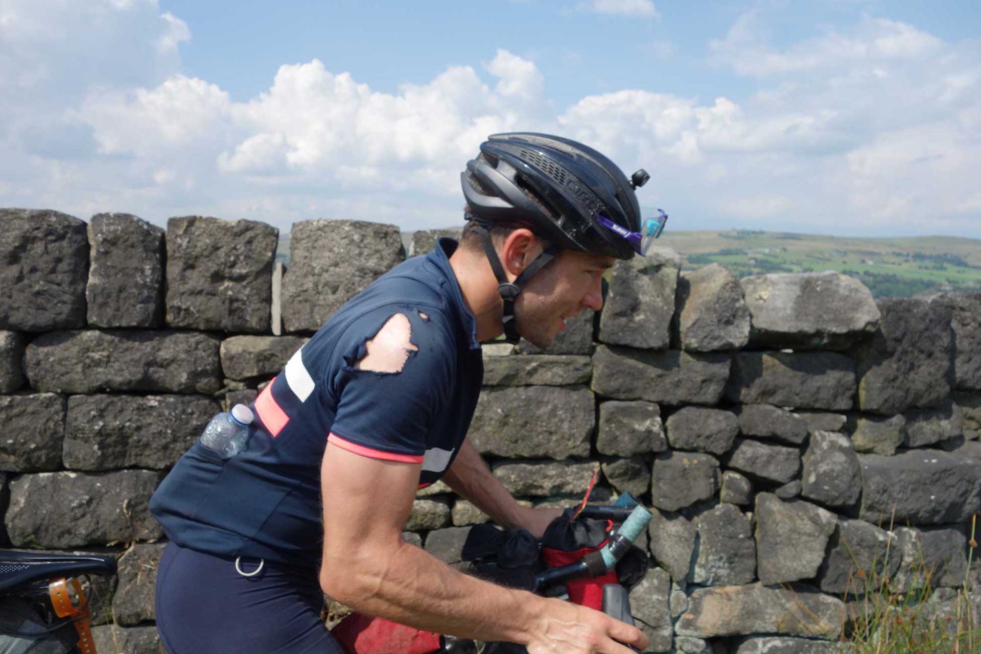 When I catch up with Chris again a couple of months later he admits that he didn’t really know what he was doing. He’d never ridden in many of the parts of the UK he was passing through – which was part of the appeal of the event. That lack of competitive drive/practice/organisation showed every time he stopped, as he’d chat and faff, and spend time choosing food, where his peers, like Donnacha would blitz into a shop, buy the highest calorie foods available in the shortest time and be gone before you knew it.