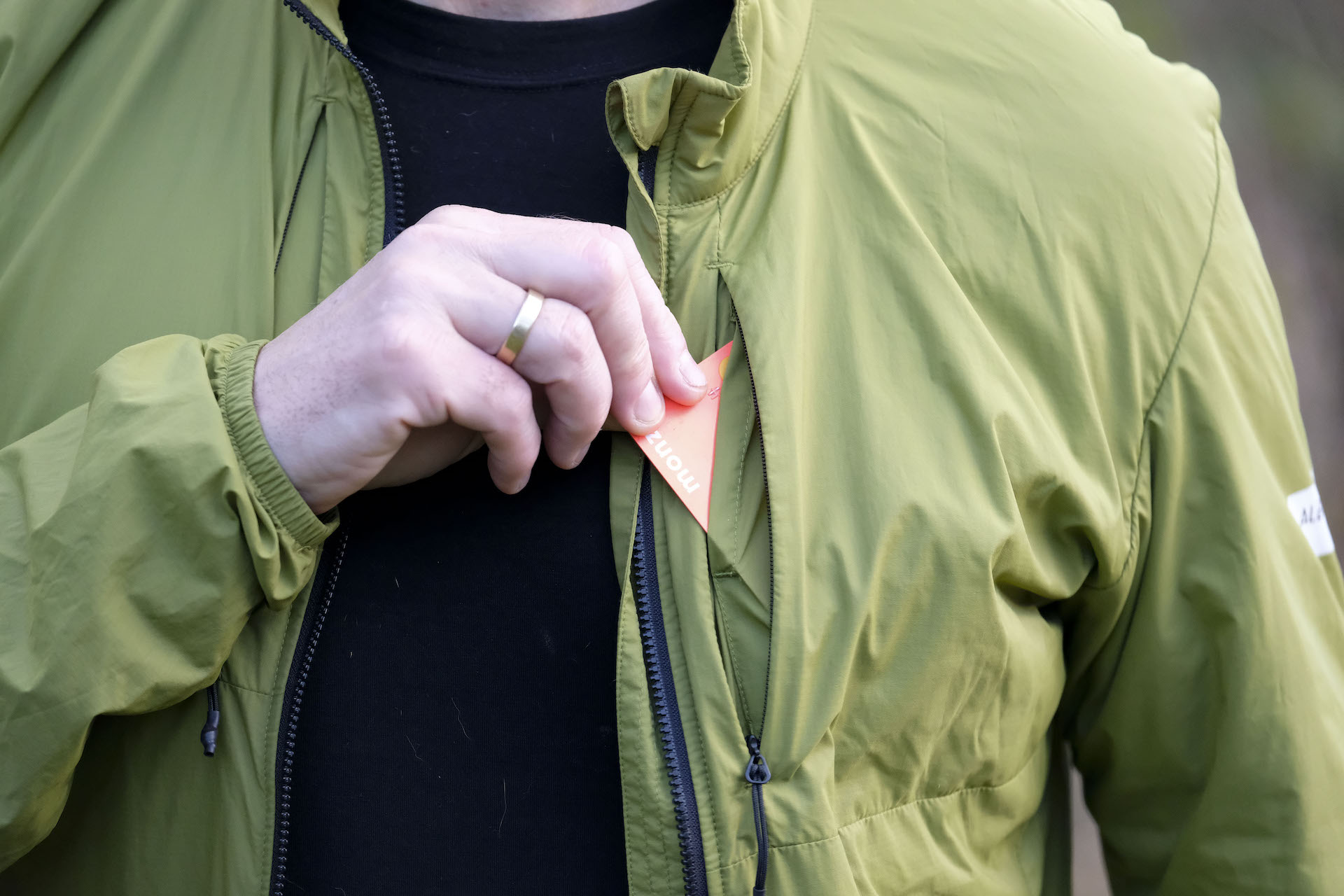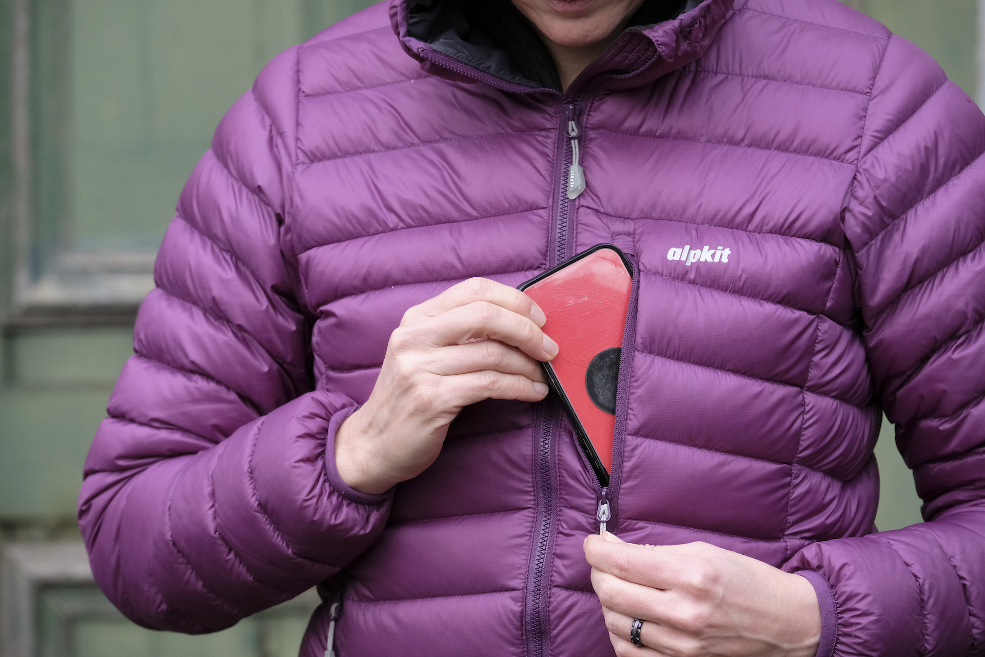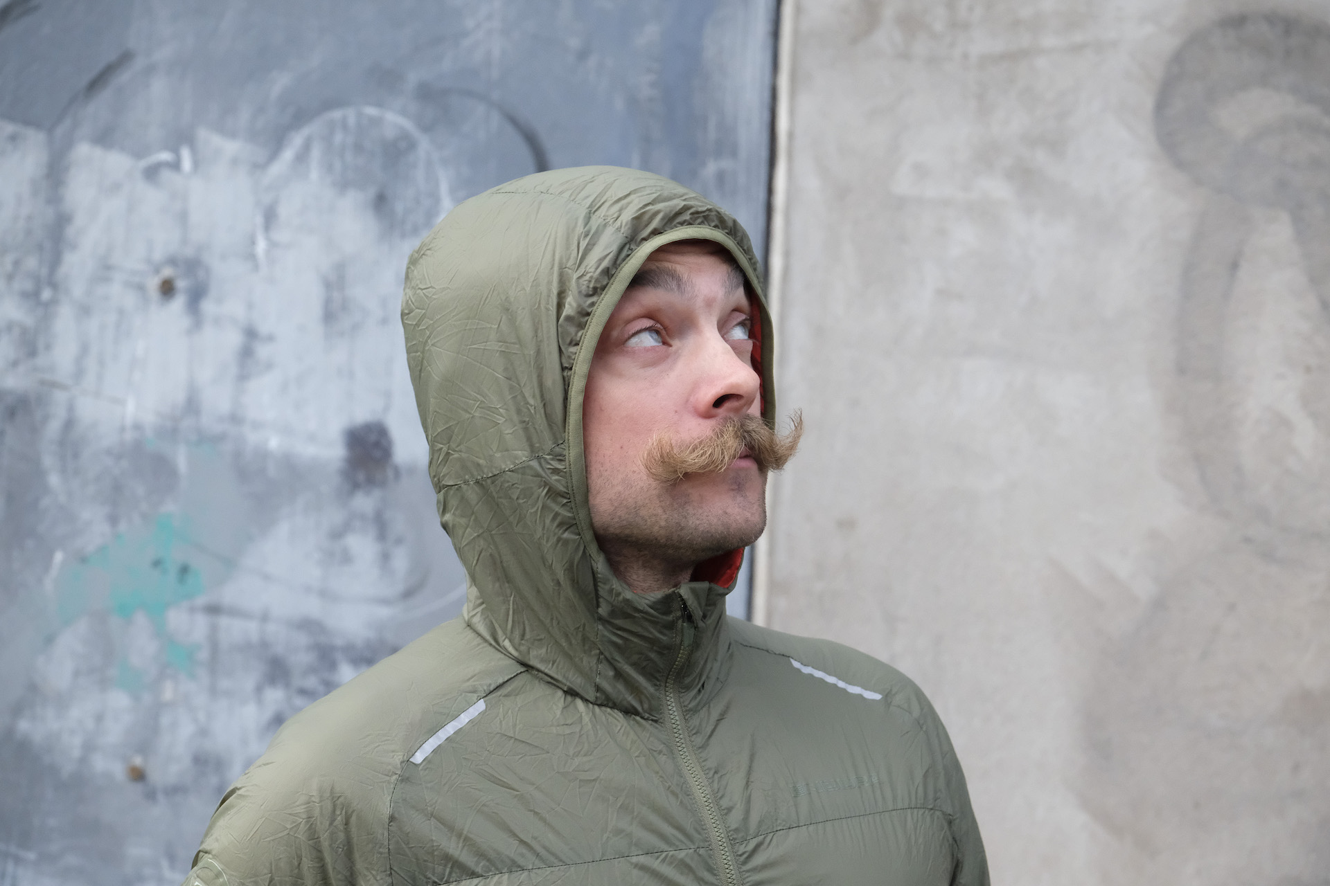 The Filoment is slim enough to fit a waterproof over if you have to, but puffy enough (with a PFC-free water-repellent DWR coating) to wear as an outer layer, even in thick cloud and light rain. It’s made with recycled nylon and reclaimed down – the down is collected from things like old pillows and duvets as well as outdoor gear – so you’re getting the benefits of down without any recent bird deaths. You get a Napoleon pocket which comfortably fits a large phone without misshaping the jacket, plus two zippered hand pockets on the front and two internal map pockets. The rear is slightly longer to keep the draughts out when leaning forward, and the hood has an elastic pull-cord at the rear so you can tighten it around your helmet if you so desire. It would be good if the hood could be tightened up more around the face to keep the hail off when things turn nasty, but generally it’s cut well to keep you snug for a whole range of movements and outdoor activities.