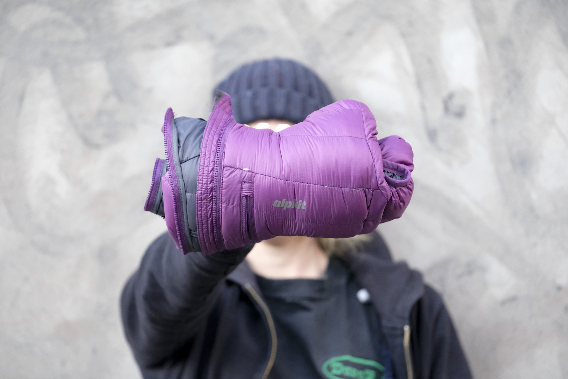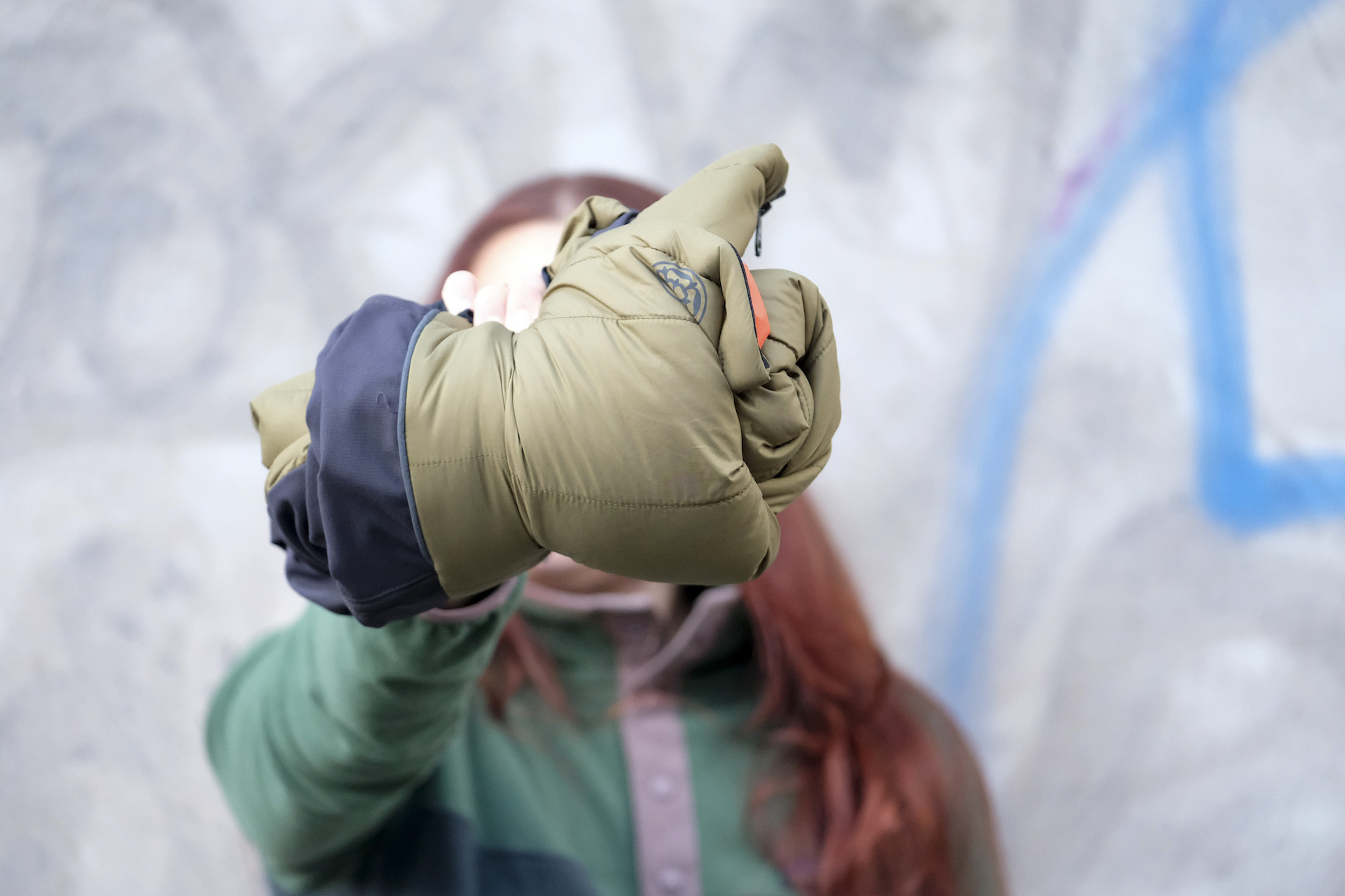 I’ve had a lot of compliments on this jacket, it really stands out as being a great piece of kit to stuff into your riding pack and save you in moments of inactivity, or cold exposed rides. I’m a big fan of layering, so this winter on the coldest days I have been wearing Giro halterneck bibs (easy for female peeing), long-sleeved merino, windproof gilet and the Pearson Field Day. If I get too hot I stuff the gilet in my left cargo pocket. Outside of rides, I rarely take this jacket off… Like I said, it makes a great sleeping bag.