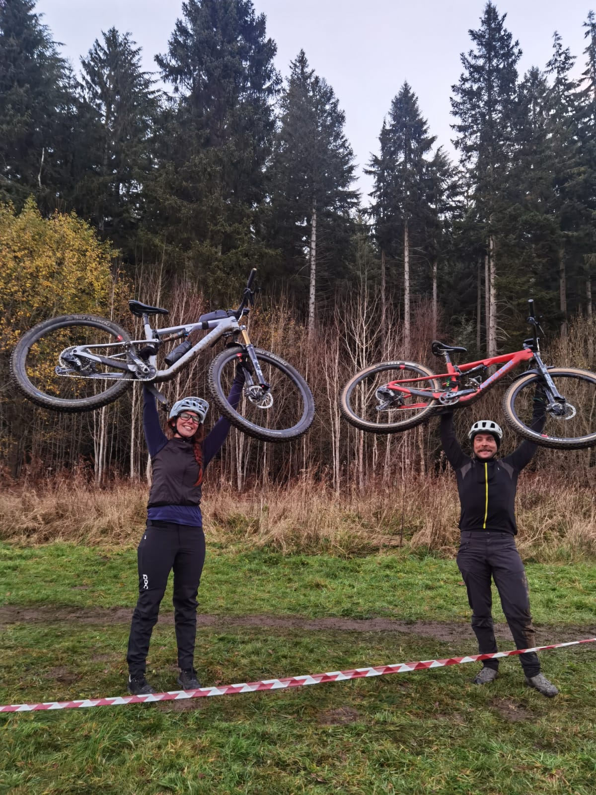 The Maxxis Aspen’s on the Blur were not befitting of the conditions; aside from that obvious error, I appeared to be on the perfect bike. Amanda’s Rekon race tyres showed a few more tread blocks but in reality nothing short of a mud spike was really going to help us in this weather. The conditions were treacherous and the course was seriously challenging as a result. There are several proper off-piste sections covering all gradient ranges from unrideable sloppy climbs to equally unrideable mud slide descents; think off-piste enduro trails with added climbing. Make no mistake, this was one serious bike testing arena.