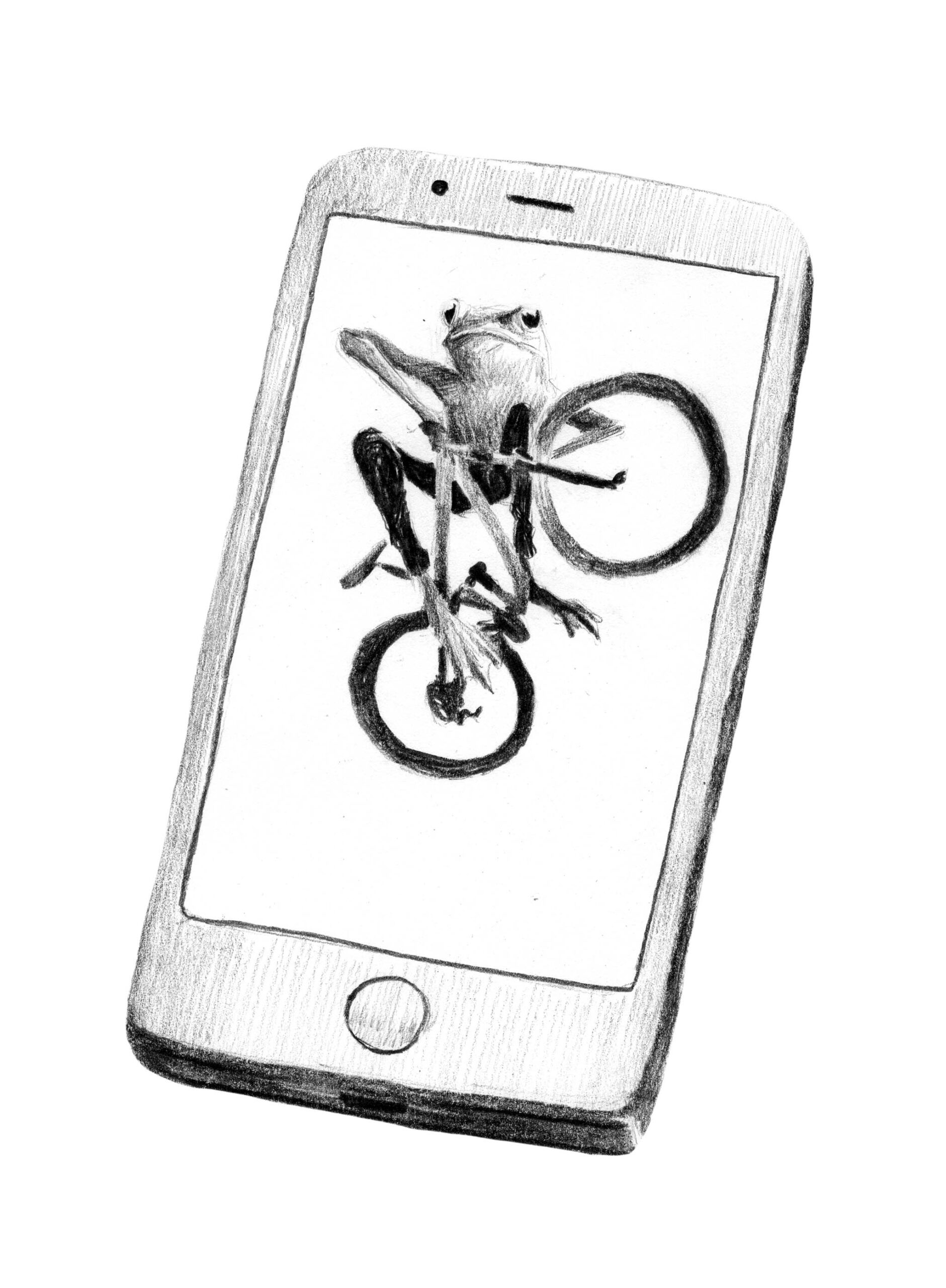 On my way up I pass a makeshift tripod made of branches and a pair of gloves, crowned by my phone. The whole contraption is aimed at a little gap jump which has wrestled me into submission. I’ve been here for the last hour trying to learn how to do proper tabletops. Even though the evening is stellar, I’m not getting anywhere and frustration is successfully marrying my feeling of abandoned stoke. The high-resolution video I just shot of myself is telling no lies. It’s ruthlessly honest, showing me for what I am and not what I feel like. I press play again, hoping that something might have changed. On the screen the same 35-year-old appears, looking very much like a frog trying to hug a bike with arms and legs simultaneously.