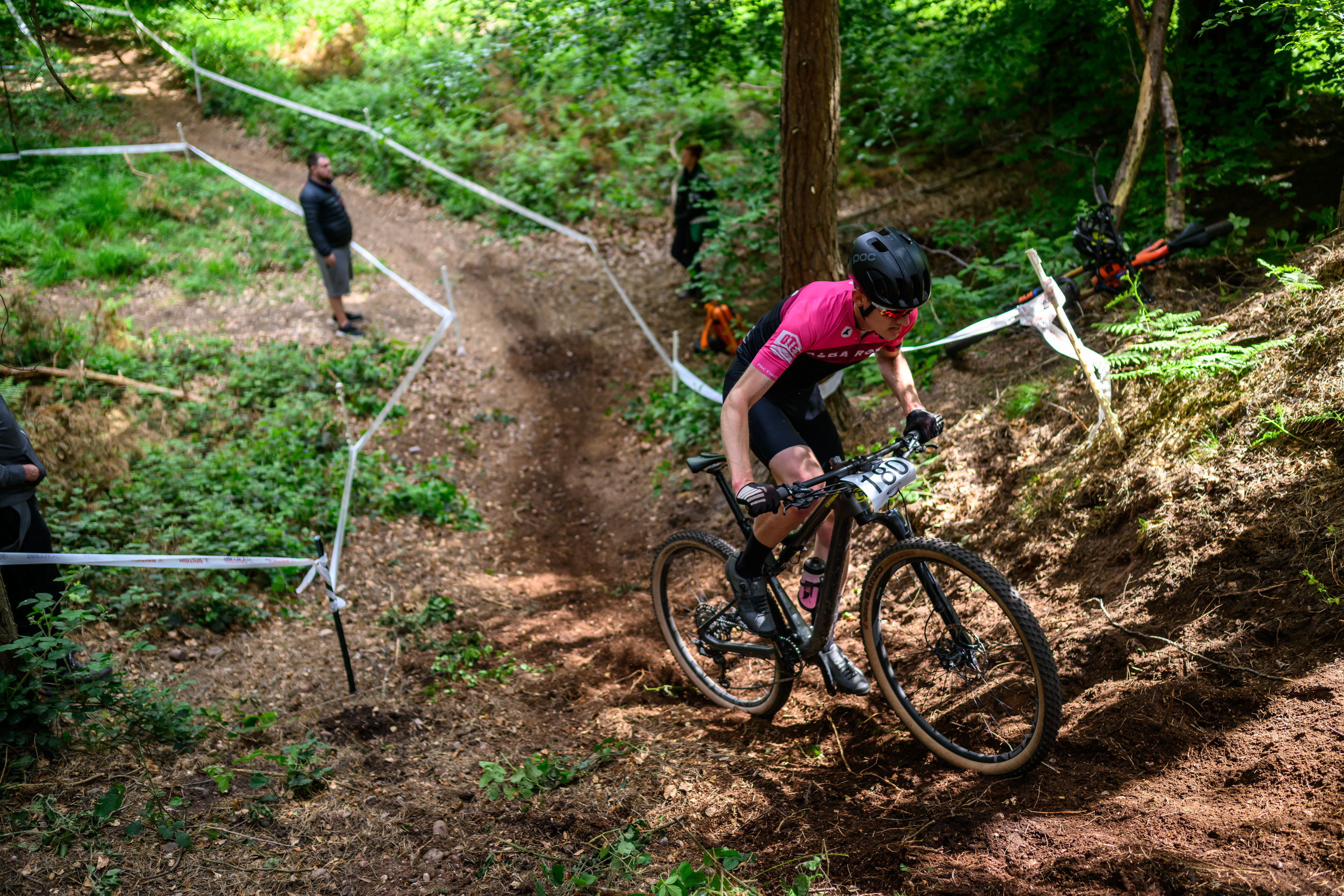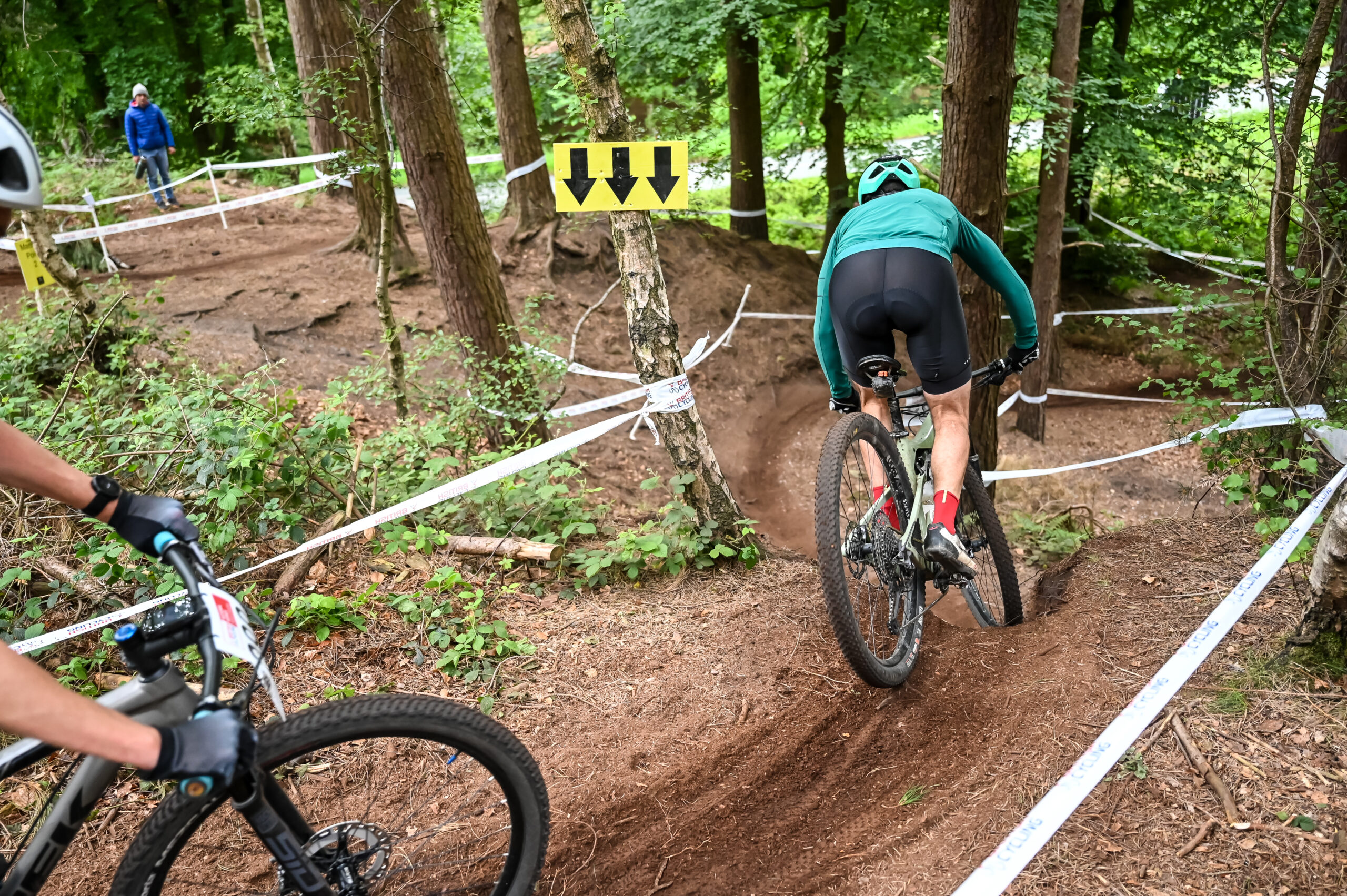 Lots of tight, twisty singletrack becomes technical at speed. Apparently. Not my speed. And there was certainly one gap between trees that wasnāt much wider than 760mm. But there were some familiar trails, some new cuts through the wood and a sneaky variant that caught a lot of people out. No rock garden, it was having a rest, but instead one of the usual bombholes had a new climb after it with a tight turn and loamy descent. There was an A and a B line in, neither of which was particularly technical in itself, but it was more how they lined you up for the climb. B lined you up better and faster but A meant you could cut in slightly ahead of someone, so tactics here could well depend on who was around you in the race. Because it was freshly cut, this trail also kept developing new lines as the racers rode it. By the time of the final race several roots and a stump had appeared on the originally loamy descent which made that section possibly trickier than the original A line. Got to love a natural trail wearing in. Keeps everyone on their toes. There was also by far the highest number of racers of the season, adding to the need for careful tactics.