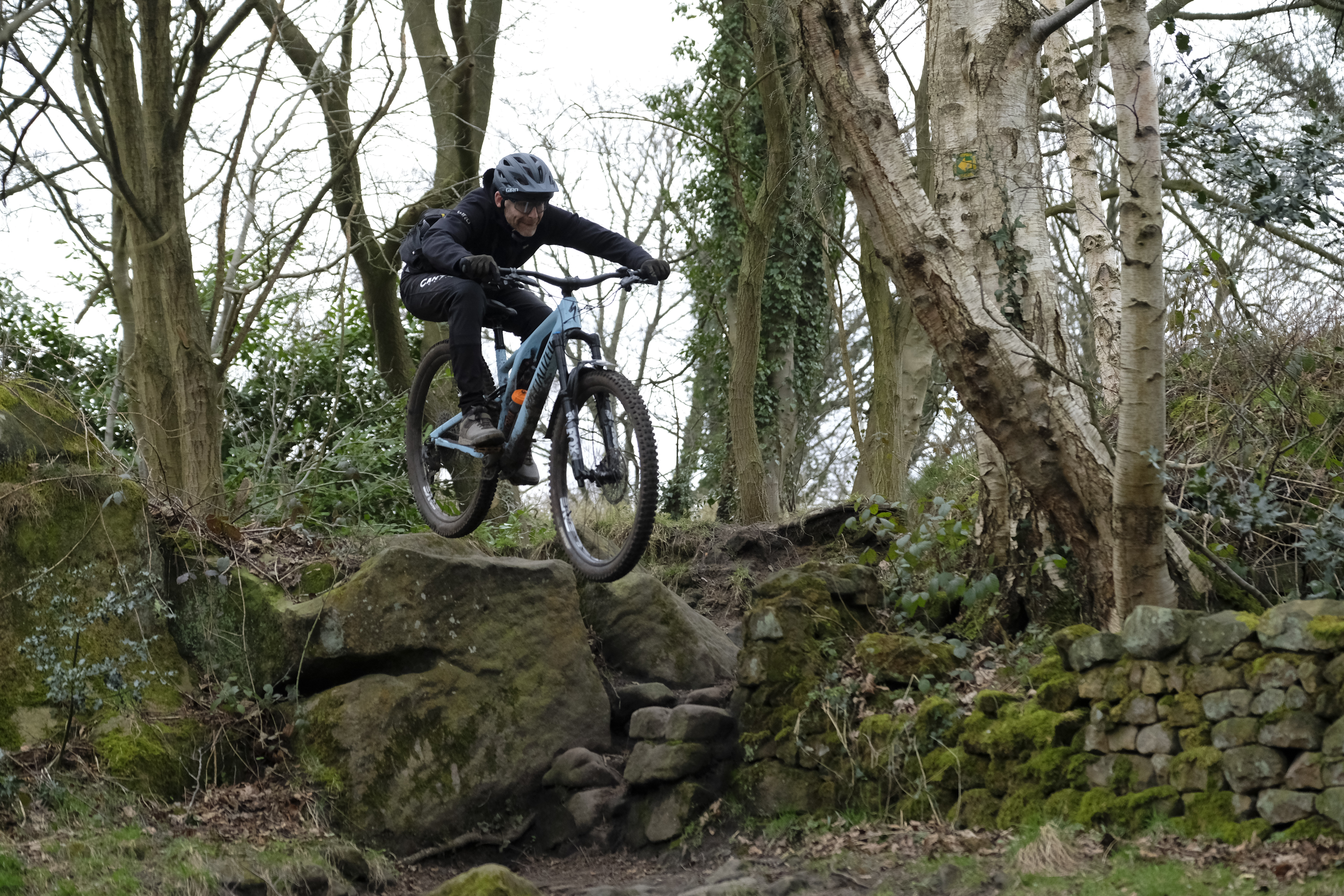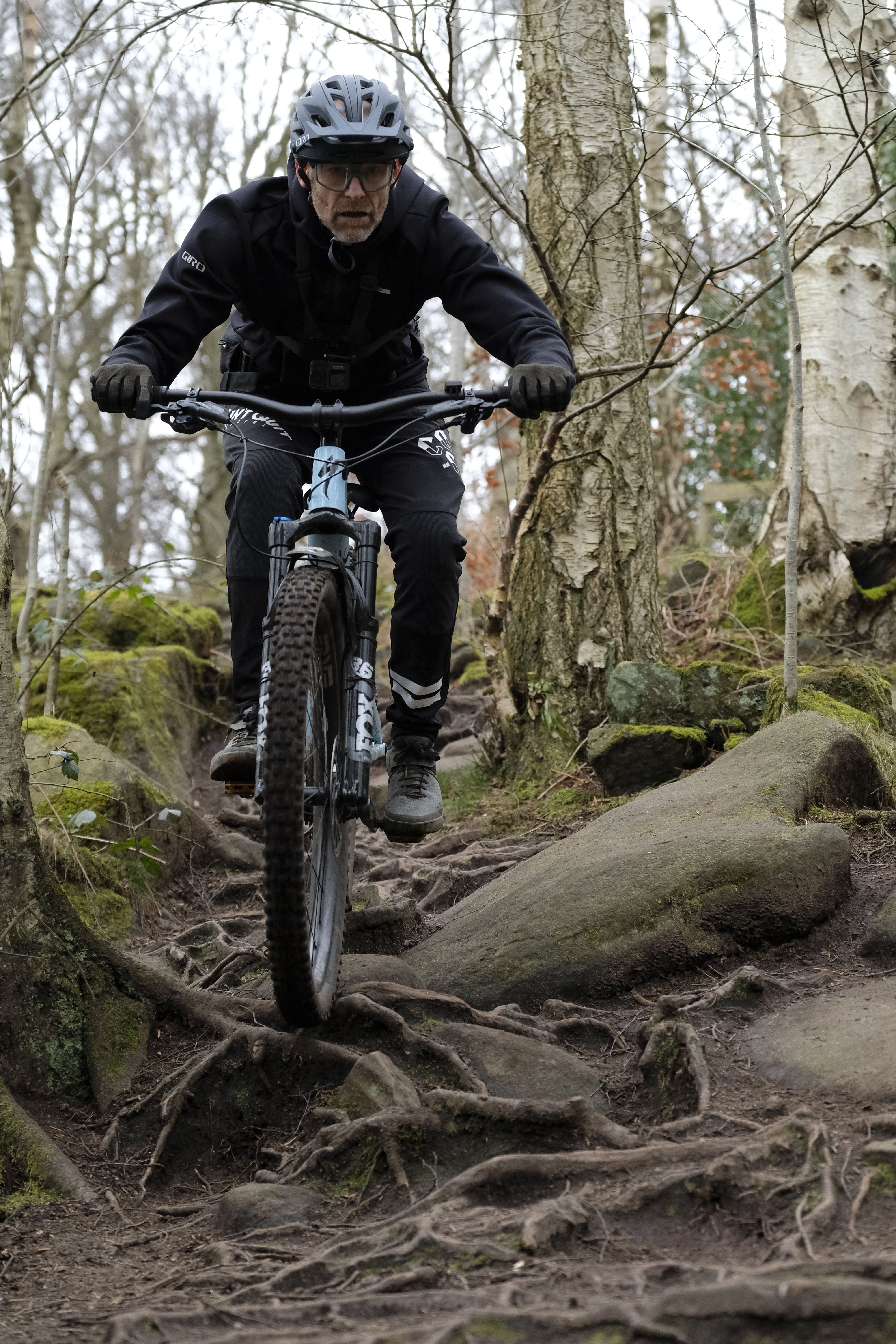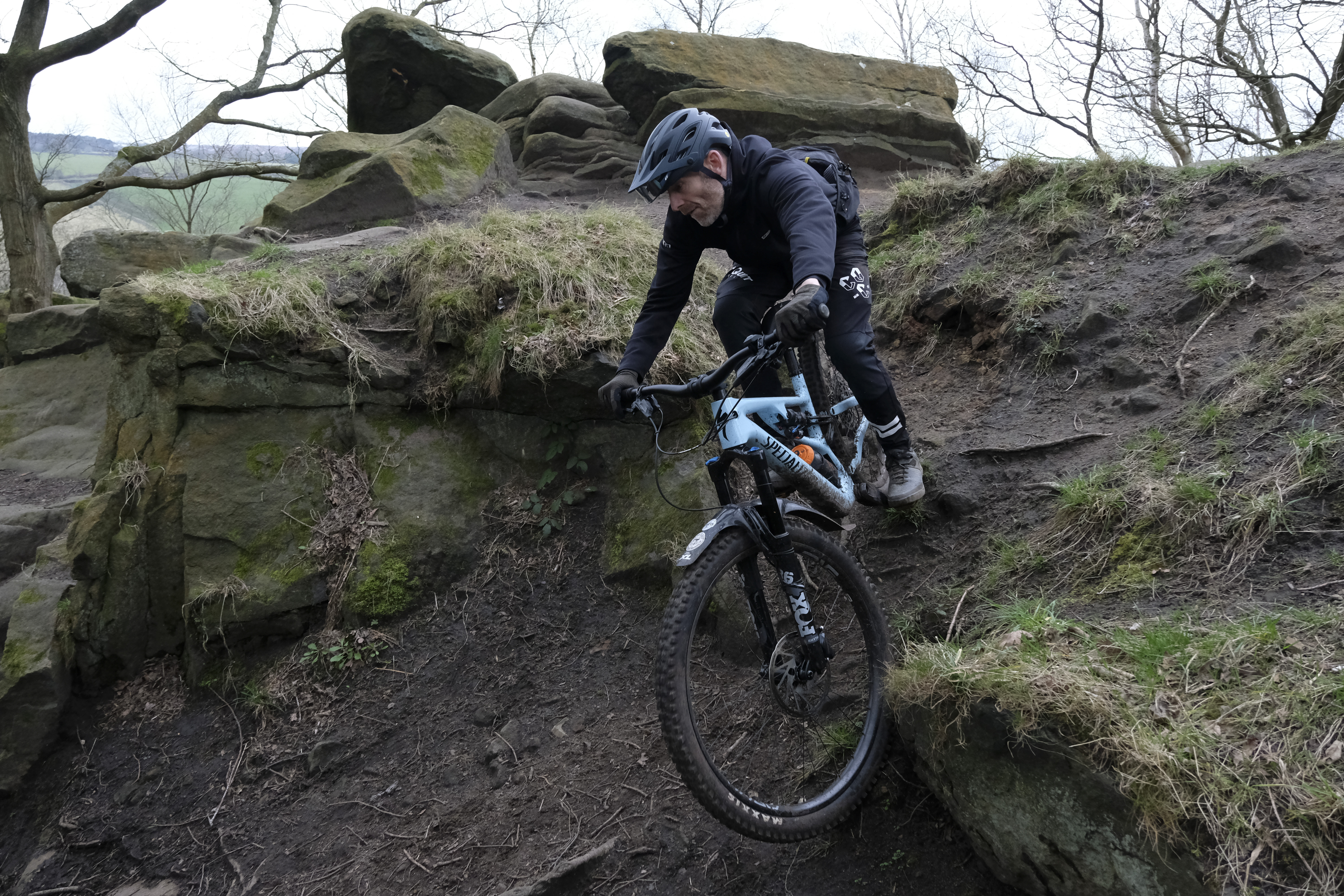 I’ve got an alloy Specialized Chisel: 100mm fork, 2.3in tyres, nine kilos. It’s nearly a kilo lighter than my singlespeed gravel bike… And it’s not even expensive. It’s just really suitable for what we want to do on it. It’s really weird seeing people riding on seven-inch full suspension e-bikes.