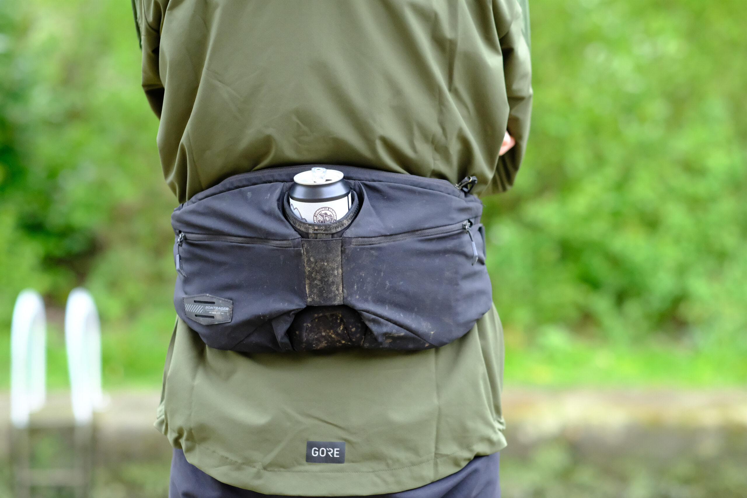The bladder feature is the key thing here. Sometimes, certain rides call for more water than a bottle can offer. Usually, I’d say just go for a trad rucksack hydration pack but the Rapid Pack Hydro does an acceptable job of both hydration rucksack roles and modest hip pack duties. The bladder itself is fine. I’m not a fan of the rather meagre magnetic hose attachment (it’s tricky to relocate post-drink and also doesn’t hold the hose as discreetly flush as on the Thule pack). If you’re not going to really need more than a bottle’s worth of water, this larger Rapid Pack still has the excellent centrally located bottle sleeve as its little sibling and that means you can leave the faffy bladder at home and just go with a simple bottle.