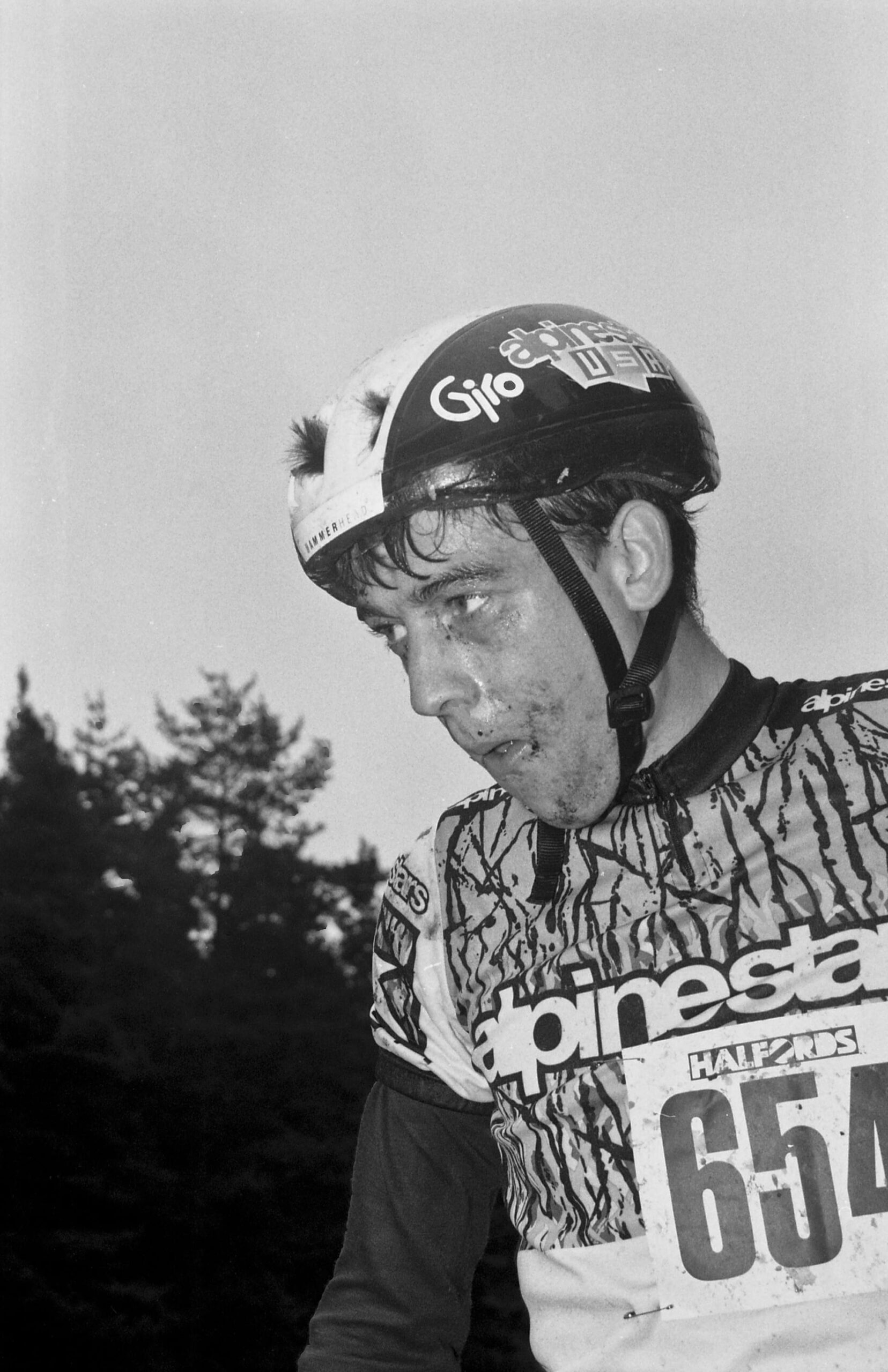 Race starts are still the same, though. Heart rate is elevated, tension is high, focus is everything and then it’s the same mad flat out sprint and jockeying for a good position at, or near, the head of the field. In the lower black and white image in the second row, off and running is Tim Flooks, the long-time RockShox mechanic and the man who founded TF Tuned suspension before going back to the spanners. Next to him, mounting his bike, is Dafydd Roberts who with his wife Sian, a former World Cup racer and national champ, ran the successful Old Skool MTB Accommodation at Coed y Brenin, Wales.