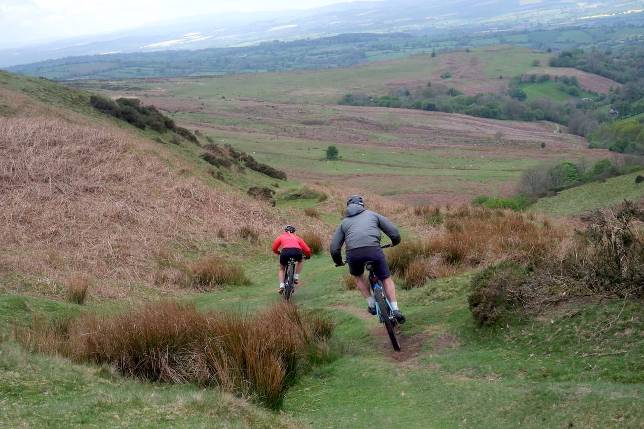 Straight ahead was where we were headed. I was excited about the next part of the route as it genuinely is one of my favourite descents – it’s not technical if ridden at a sensible speed, but it is swoopy and flowing like any self-respecting singletrack should be. The descent starts from the head of five springs, which is creatively named, you guessed it, The Five Springs. Laid out before you is a sweeping green ribbon of trail that winds its way into the distance, seemingly without end. Picking your way down the trail, you start gathering a lot of speed without any effort as you hit turn after turn of natural grassy ‘berms’ which spit you out onto a wide open grassy plain. Just to the left of the trailhead, piquing your interest on the horizon, is an Iron Age hill fort called Nordy Bank. The fortification embankments make themselves known instantly as they are very clearly man-made. Covering just under nine acres, the site is pretty remarkable. This place is steeped in history and the evidence is all around that people have worked and inhabited the land for a very long time. Despite this, owing to the relative remoteness of the route, it is easy to feel like you’re the only human who has ever clapped eyes on the rolling splendour before you.