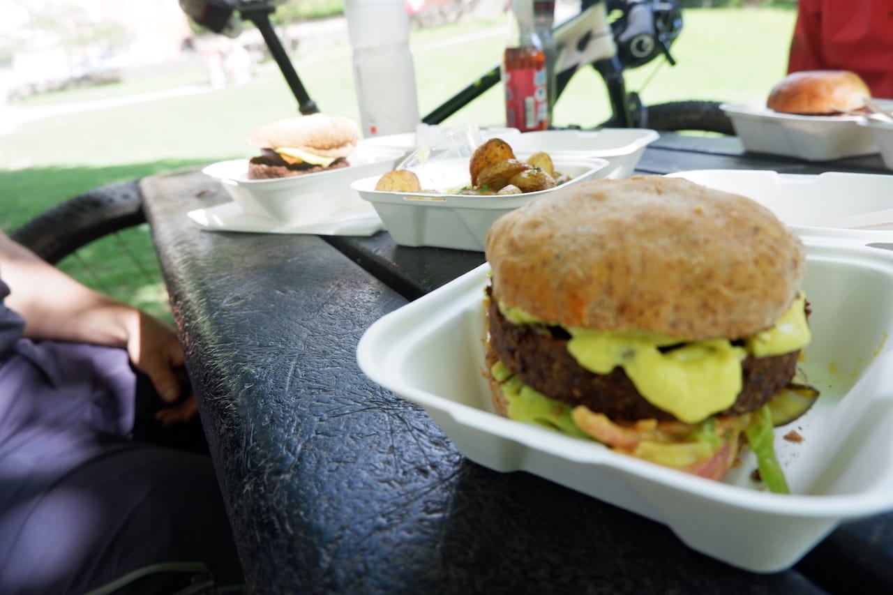 Ludlow has a vast array of places to eat and for three hungry cyclists with a solid amount of kilometres and climbing in their legs, it would be easy to be overwhelmed by choice. But with the sun now firing on all cylinders we decided we’d pay a visit to CSONS restaurant/café that sits right next to the River Teme in Ludlow. Super-tasty food, a river and a patch of grass to sprawl on in the sunshine. Do you need more?