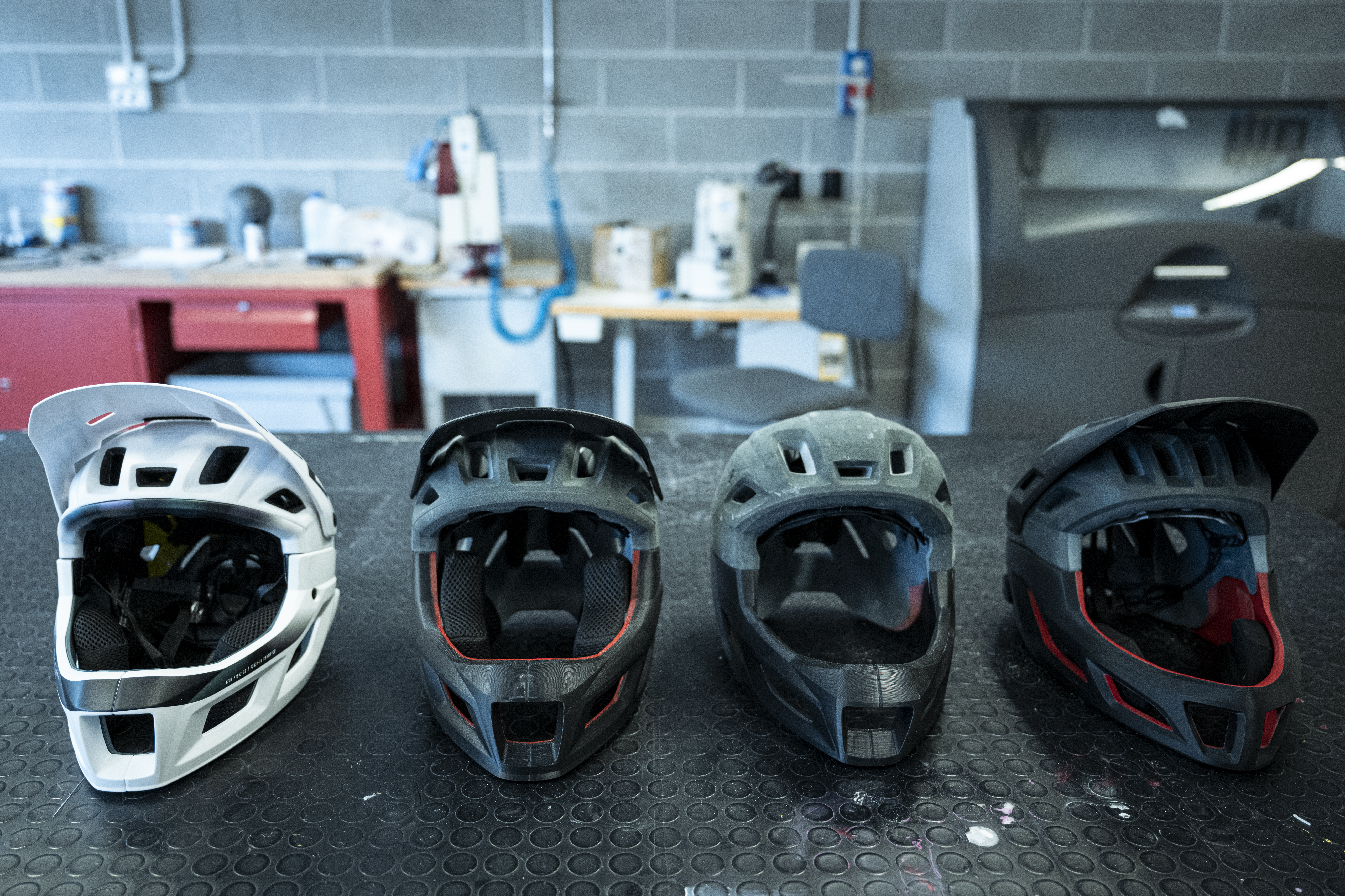 I am greeted by Ulysse Daessle, media and PR guy for MET Bluegrass. We take a relaxed tour through the facilities to get my bearings, which feels more like a house tour than a business one. The mood is calm, the staff are few, and there’s a little dog pottering around. What threatened to be a very corporate office, judging by the modern architecture, has turned out to be rather hygge. I’m shown the gardens out back, home to several rescue chickens and a donkey, and we take a peek into the various design and testing rooms that will be the focus of my visit. I’m here to view the manufacturing process from concept to testing.