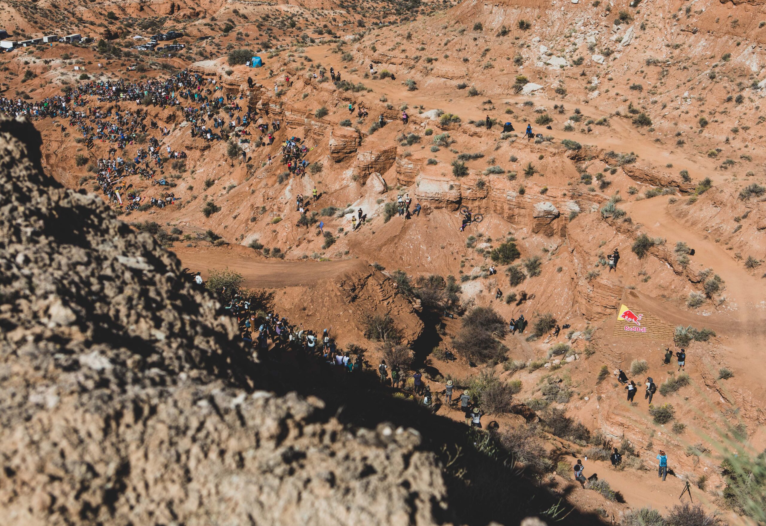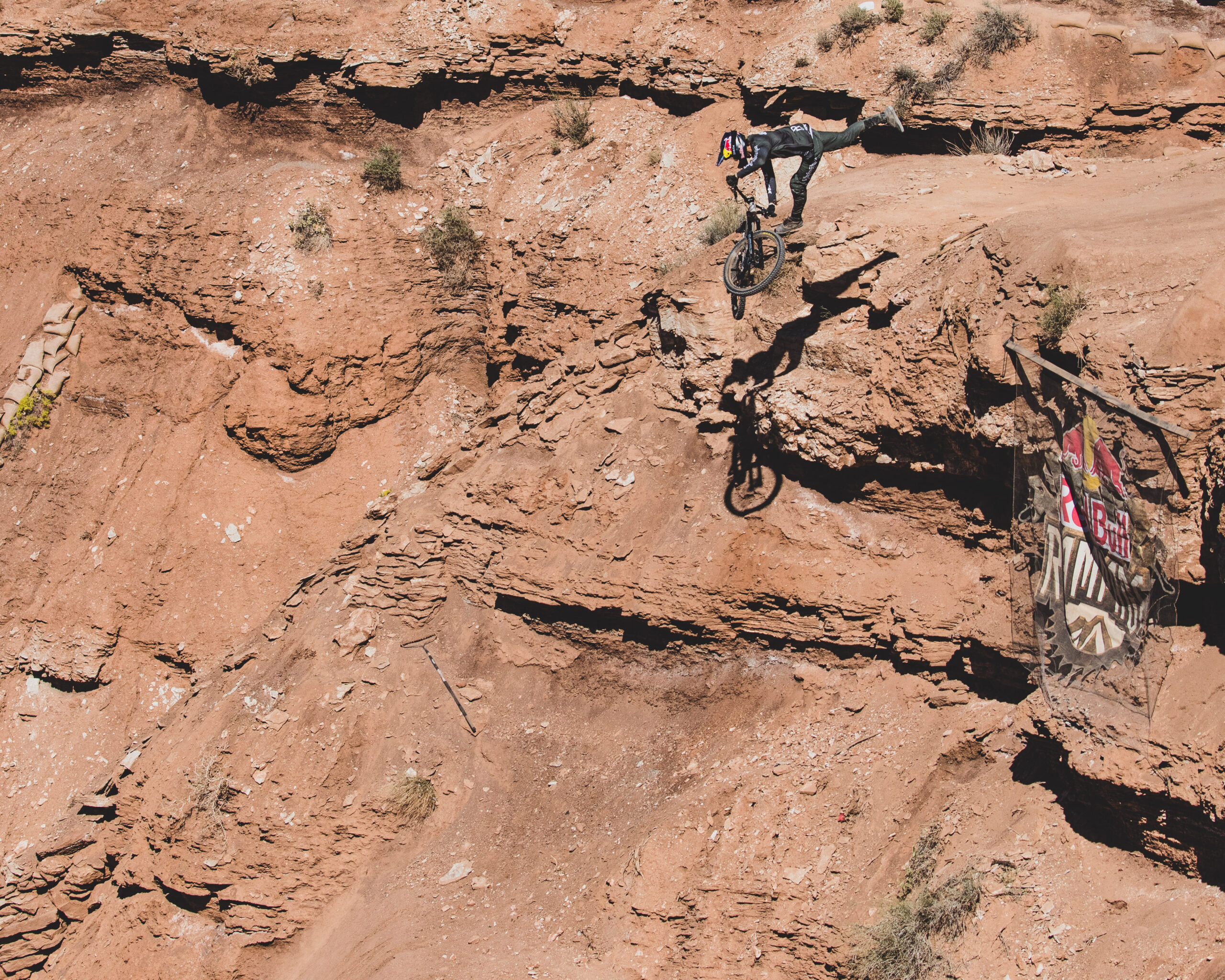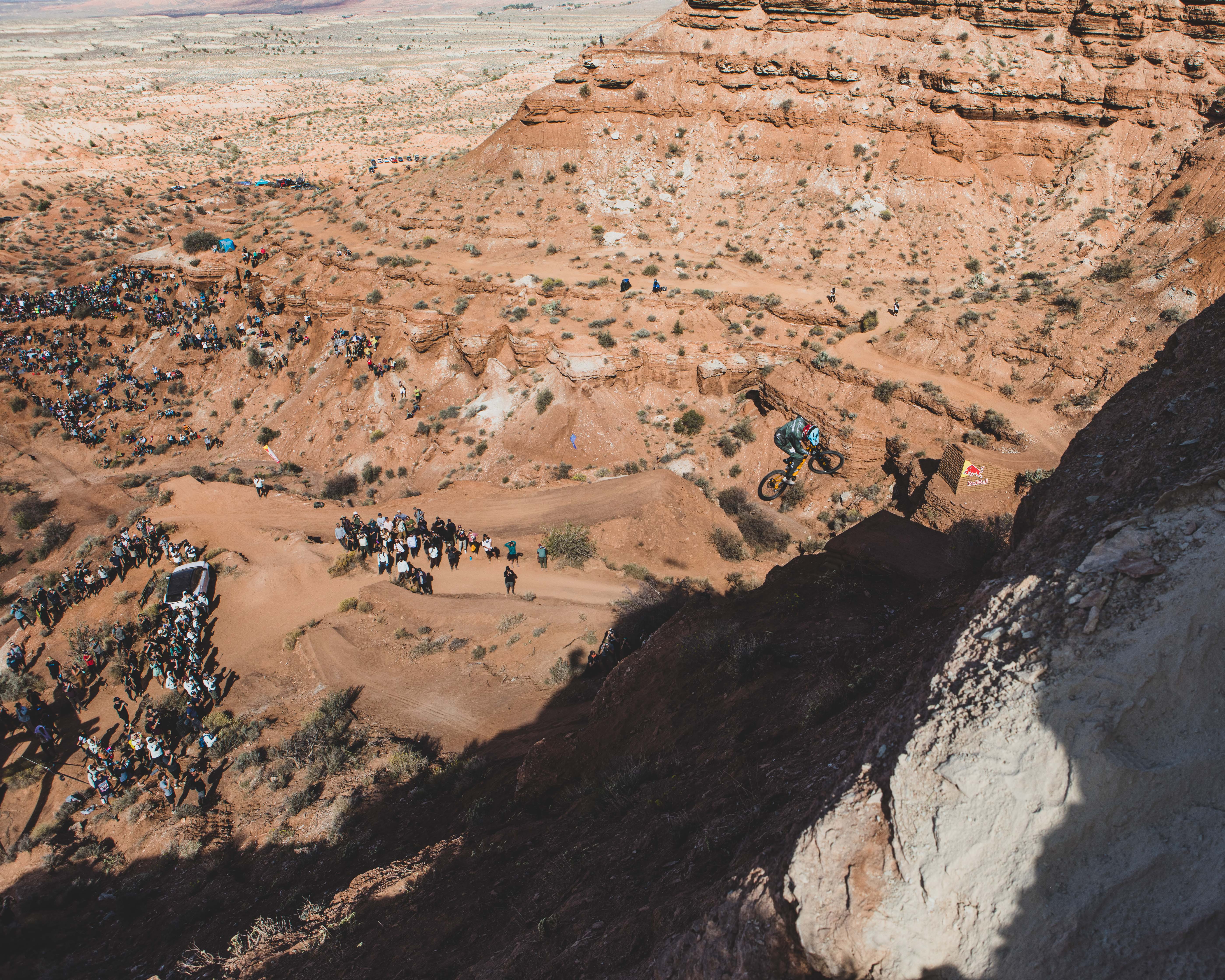 It’s a cliche to talk about the scale of the mountain at Red Bull Rampage, but so what. Look at it. Spot the rider, spot the landing?
