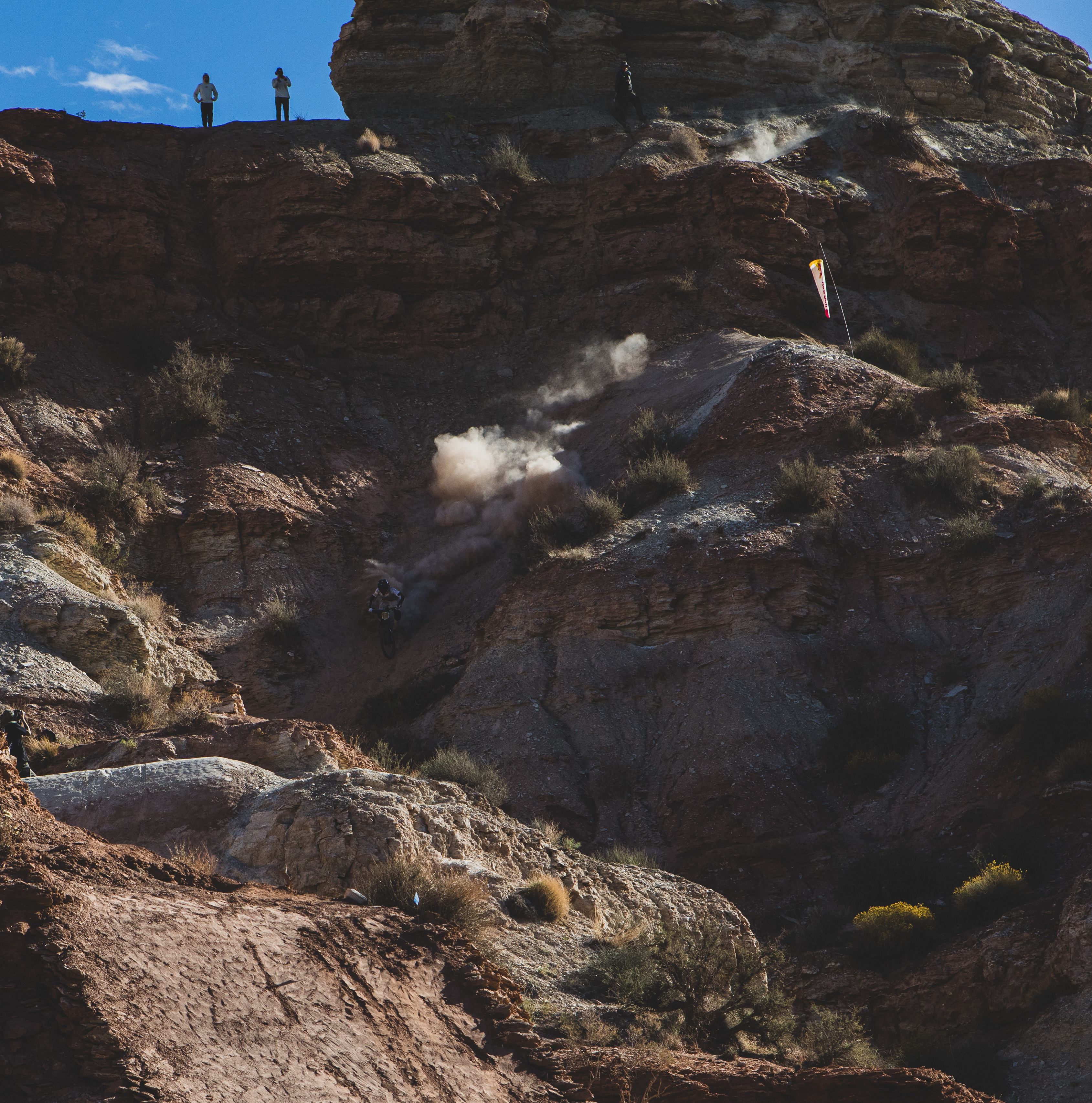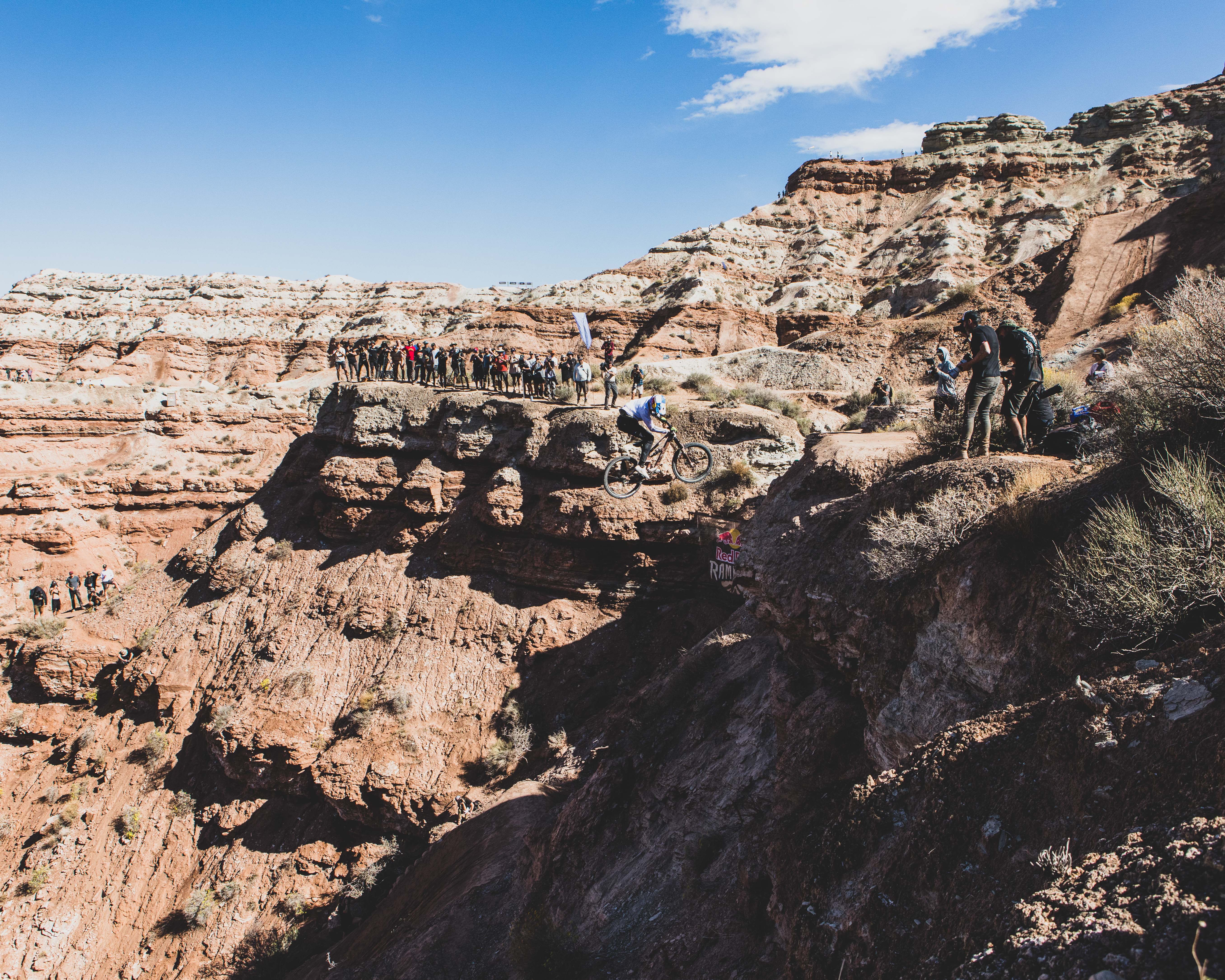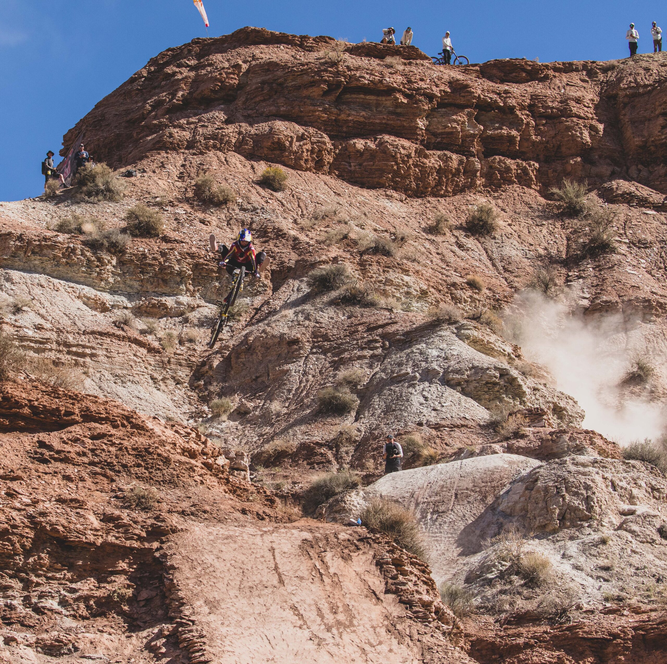 It’s a cliche to talk about the scale of the mountain at Red Bull Rampage, but so what. Look at it. Spot the rider, spot the landing?