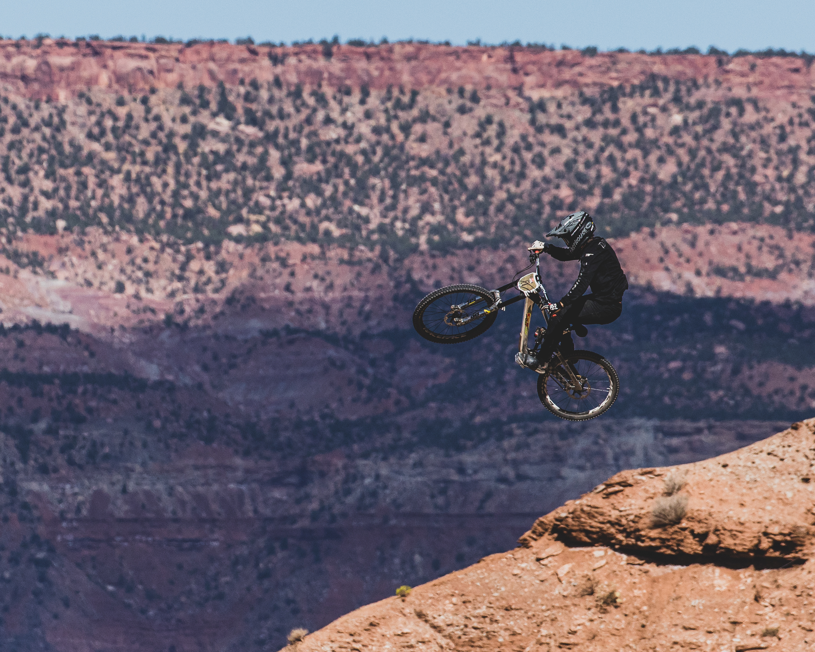 Cool mornings give way to warm afternoons then early nightfalls by the time October comes round with Rampage. The Utah light makes for great photos, whether it’s golden hour shots or bleached bright midday sun. But spare a thought for the riders, whose lines can plunge into shadow and back out again. No time for pupils to adjust, when you’re eyeballs out, part way down a cliff, and planning to trick the next drop.