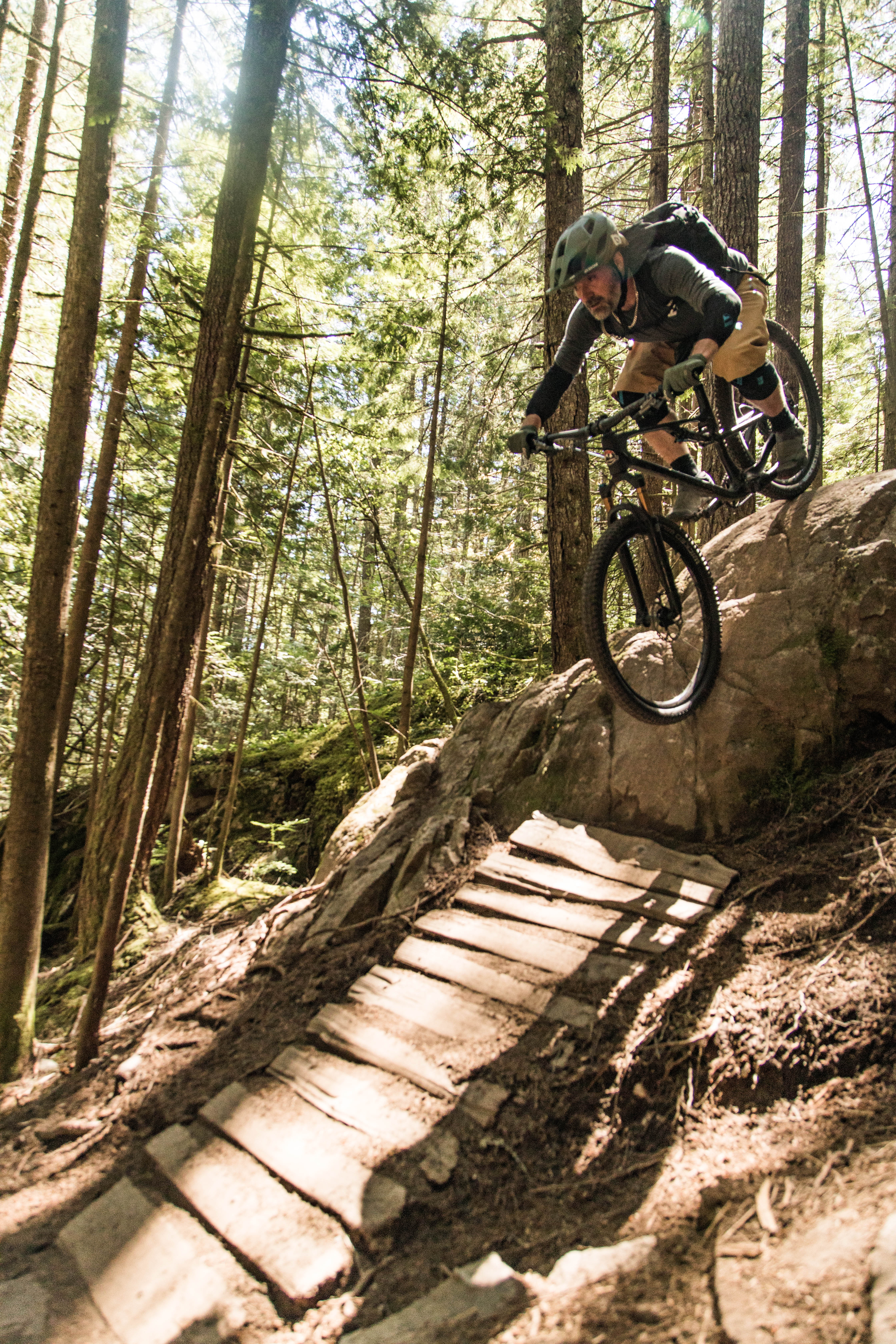 So – the climbing. There is a lot… All in one go… About 5,000ft in total, mostly in one major hike. But the payoff on this trail is absolutely remarkable. For me, and a few others, Rupert is our first taste of genuine Squamish slab riding – and it’s a doozie. A cliché I know, but YouTube does not do this stuff justice. Tight rock-built turns, super-satisfying rock rolls, boulders to huck off, mad little wooden bridges and a roll down a slab so steep my back tyre threatens to pull my shorts down.