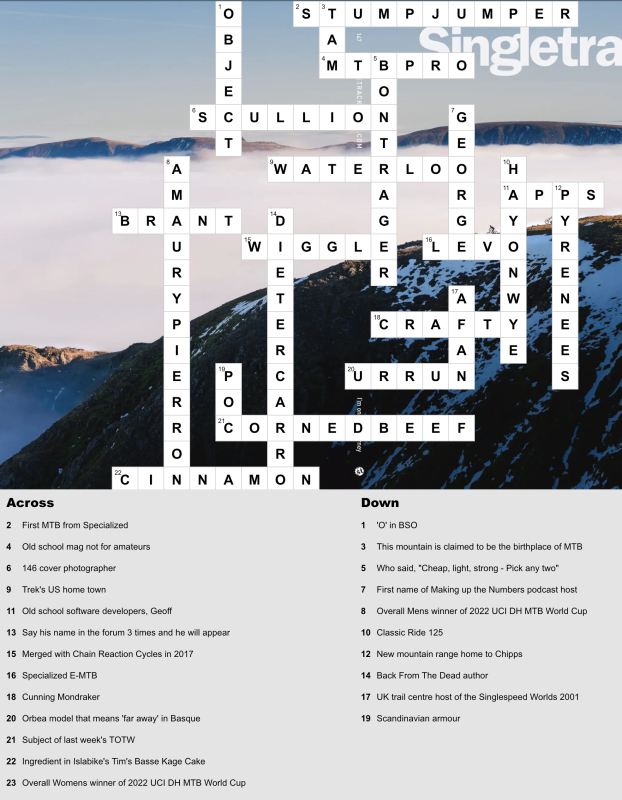 Don’t forget there are prizes for two of you who manage to complete our crossword and if it’s all too tricky there are some just for fun puzzles further down the page. Oh, and the solution to Singletrack Crossword #2 is down there along with all the names of those that successfully completed it.