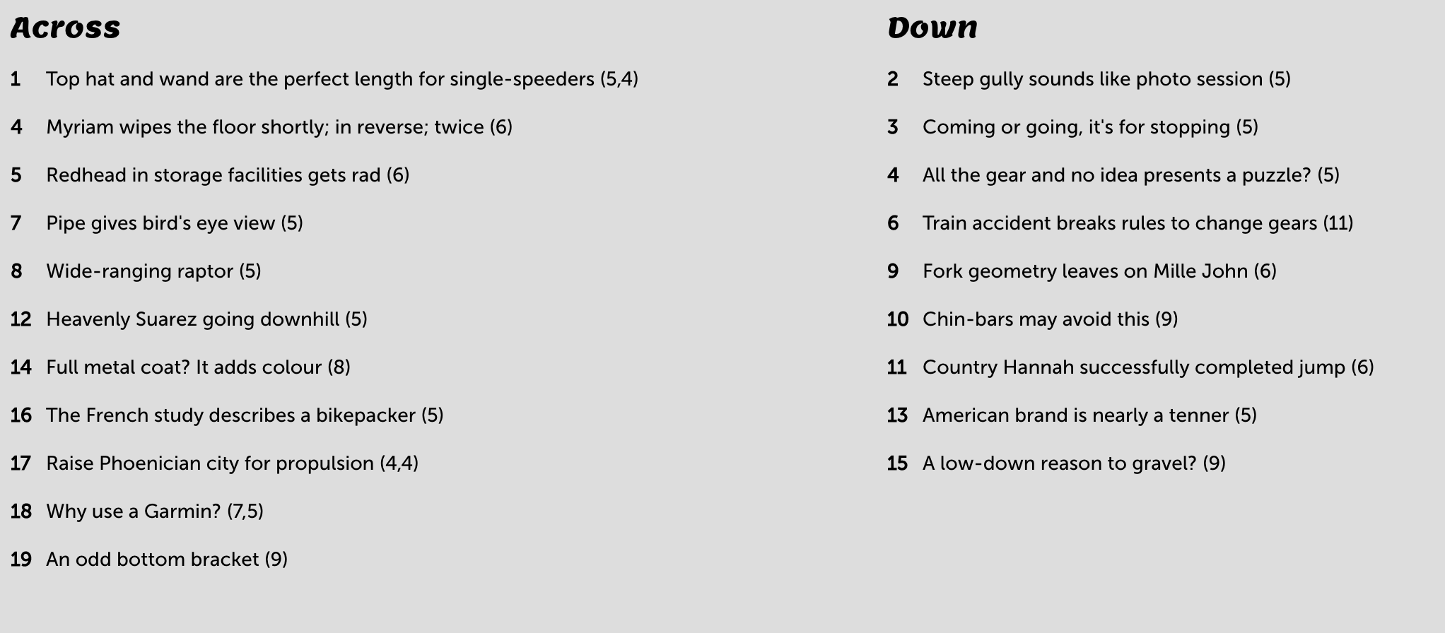 Our crosswords and puzzles are for full members only. Join us today to get full access to all our puzzles.Win a Singletrack Tea Towel