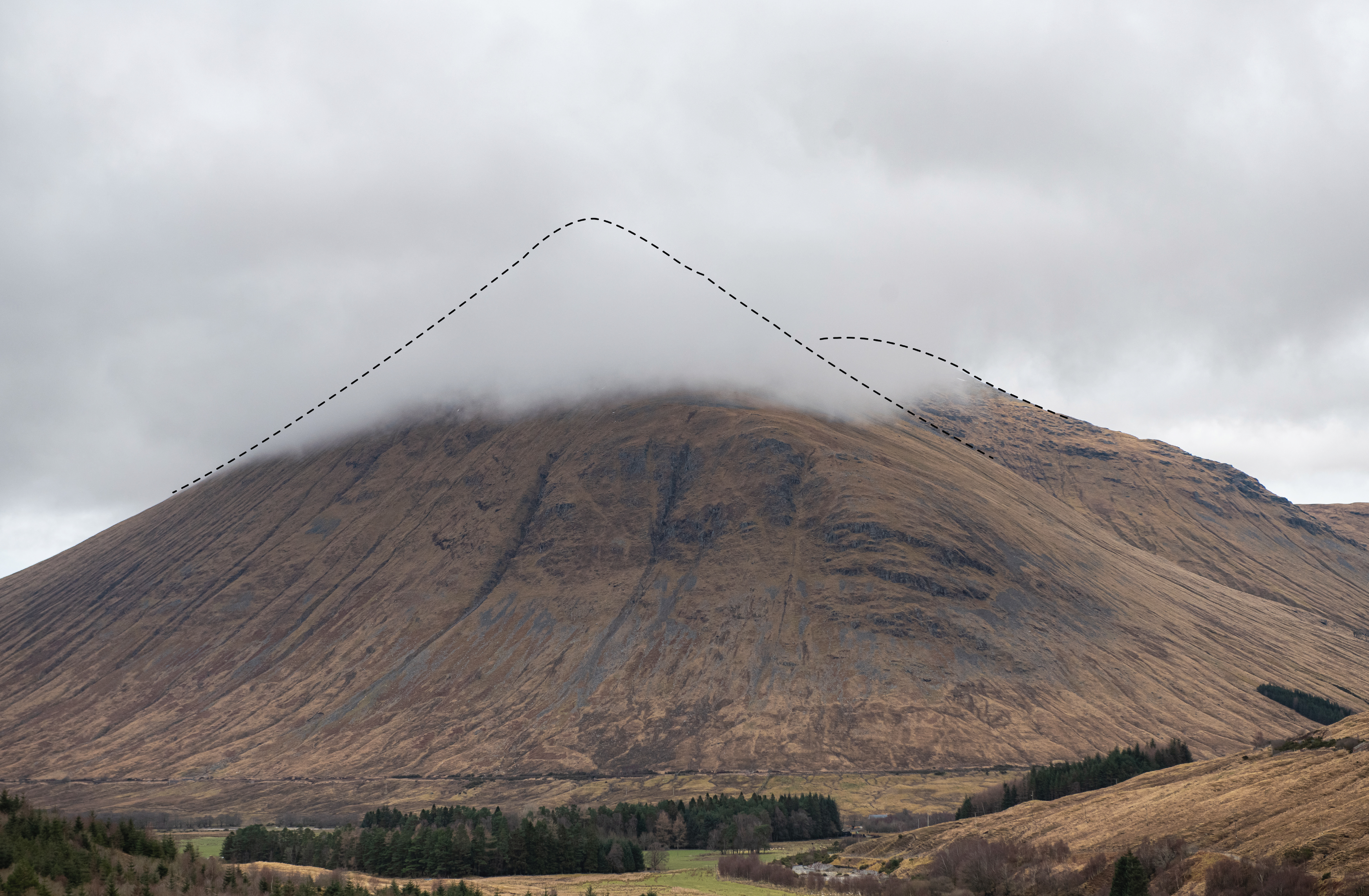 Anyone who has headed north after sampling the chips at the Real Food Cafe in Tyndrum, for adventures in the Highlands proper, or for the Fort William World Cup, will know Beinn Dorain, even if not by name. This massive pyramidal Munro stands tall over Bridge of Orchy at a cool 1,076m (3,530ft), with its most impressive face greeting you as you start the long, steady descent into Glen Orchy. Along its western flank runs the West Highland Line and the West Highland Way, with river gullies carved straight down its front.