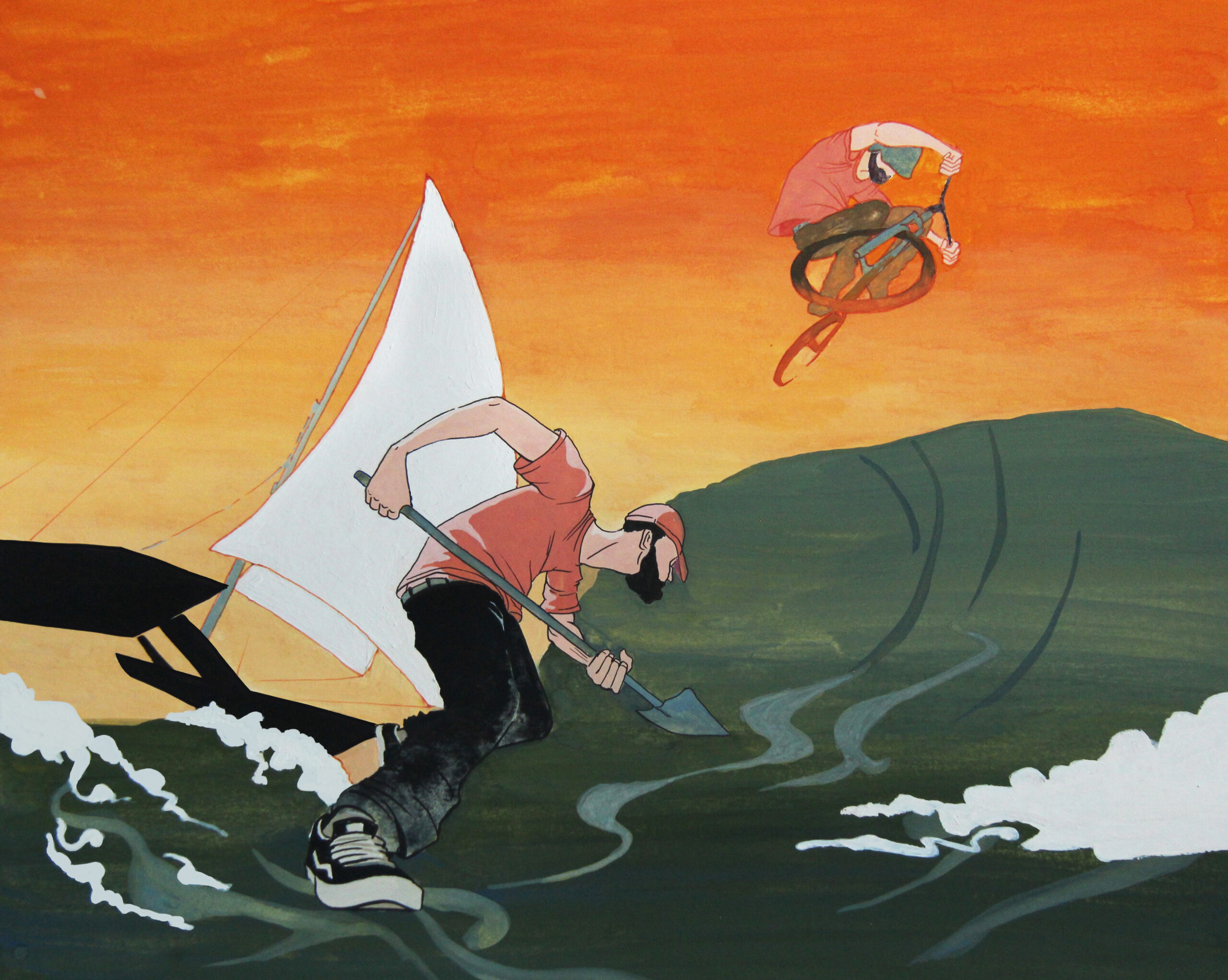 Days later the idea of that jump still lingers. I’m hunched up on our living room sofa weighing work versus reward, finding no sense in the equation no matter how I approach it. I fix my stare at the far side of the living room. How far could it be, just about 20 feet? The image of my dad carrying those huge sheets of plywood between the basement and our living room appears in my mind. I throw the memory of that living room catamaran towards my doubts and I manage to scare them off.