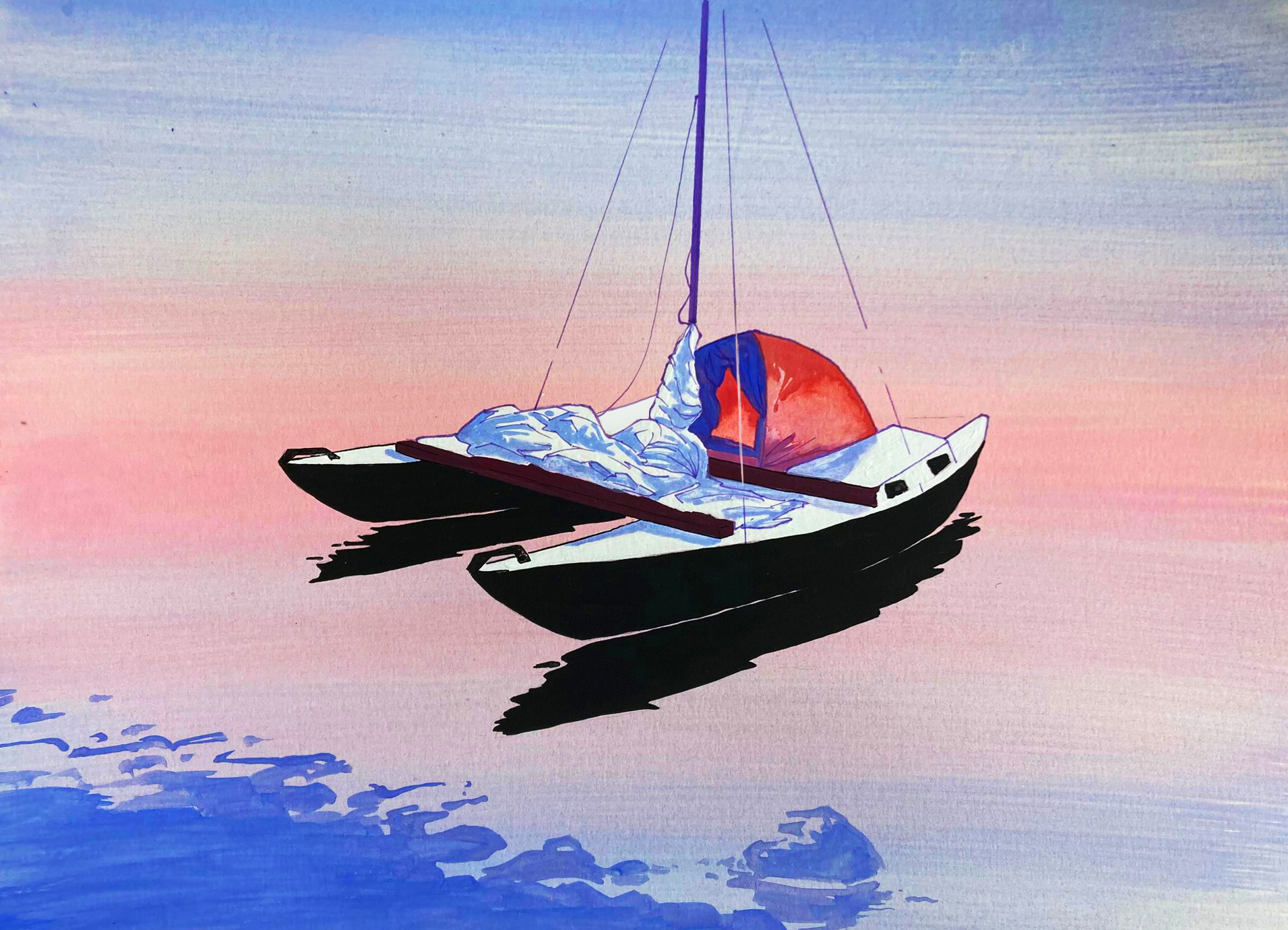 My dad once brought me and my siblings on a trip that left a lasting impression. We were northbound, sailing on the High Coast and the catamaran was hauling, coming to life with a brisk side wind. We spotted a motorboat ahead – the people on board that vessel could probably hear us three kids howling and jumping up and down as the catamaran overtook them, powered by sails alone. In the evening we tied up on a beach too shallow for any other craft and set up our tent directly between the hulls of the catamaran. I wonder if it’s something like this my dad imagined when he went to bed after a late night working on those hulls. A vision of adventure.