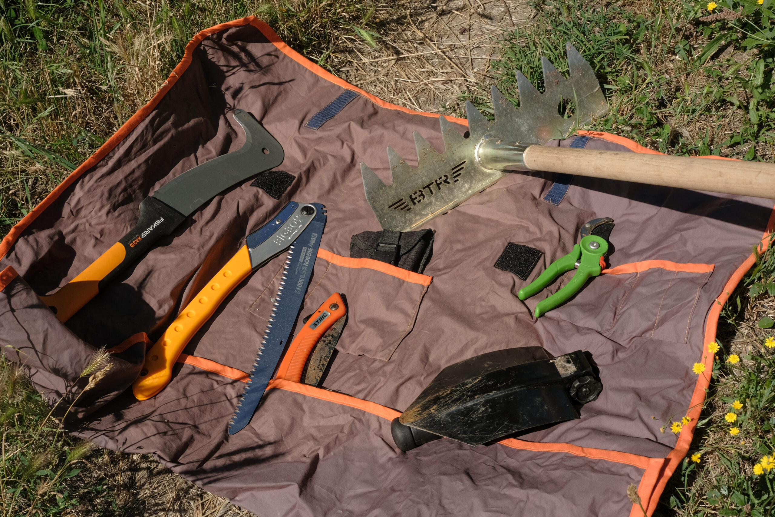 There’s an argument for having cheaper secateurs and folding saws as you’re more likely to lose/forget them in the woods. I say go quality, but get ones with bright handles – a Silky Gomboy is next on my shopping list. My wife has also made me a custom tool roll so that everything stays together and it’s obvious if I’ve left a tool behind.