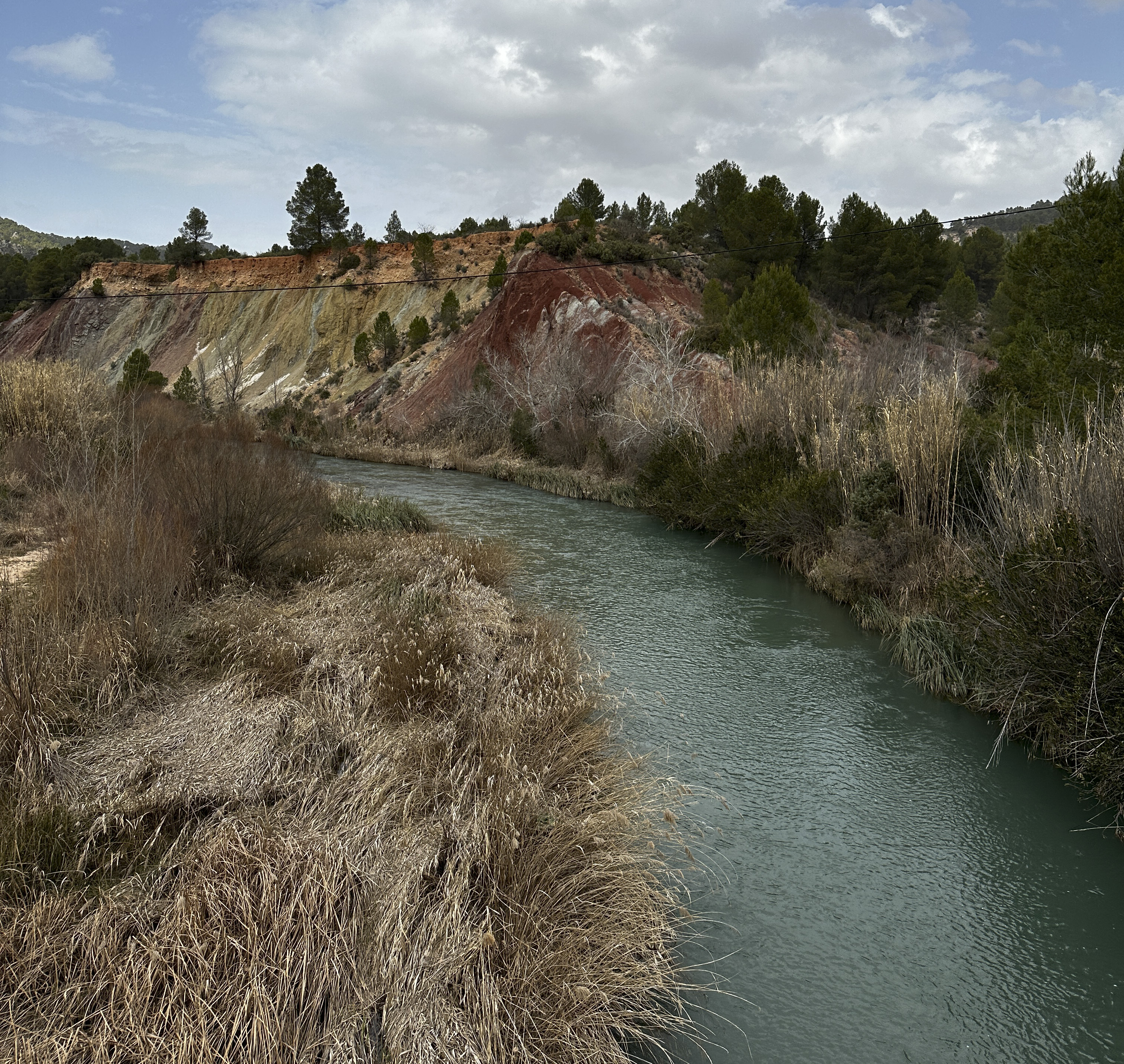 Though I am aware of my weaknesses, I do feel particularly out of sorts today. Weak in the mind as much as the body, which is often much harder to work through. Fortunately, the route we’re taking today is quite a contrast in scenery to what we’re used to, so I have constant distractions from the mental battle I’m fighting. Colourful layered rocks and dry crumbling river banks contrasting against the pastel green water make for a nice setting to quietly churn away and avoid looking at my Garmin.